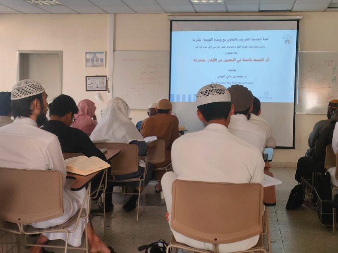 تنفيذ لقاء توعوي لطلاب كلية الحديث الشريف بالتعاون مع وحدة التوعية الفكرية يوم الأربعاء 23-ربيع الثاني-1447