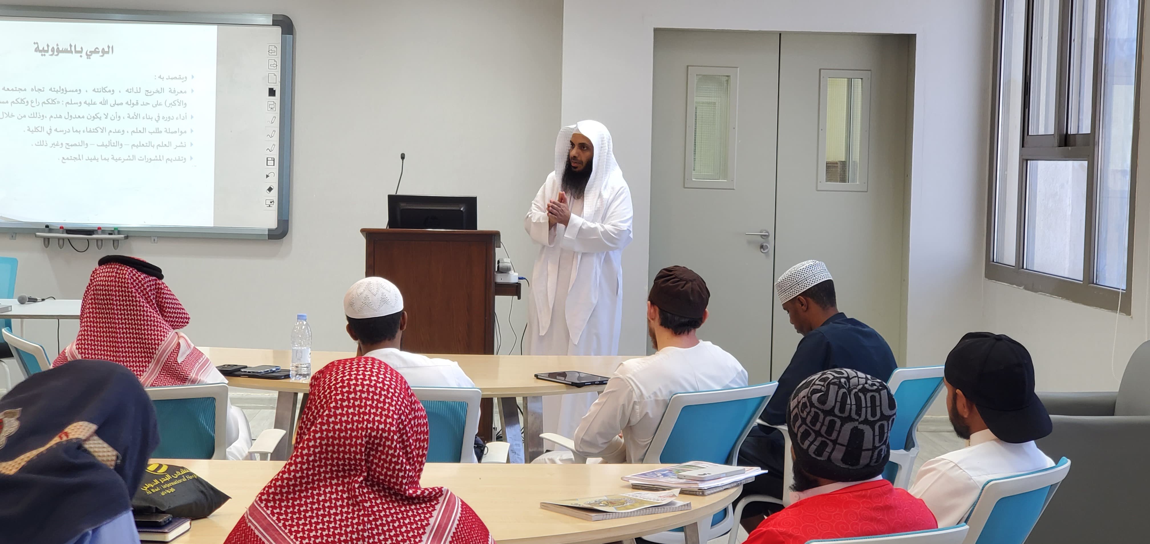 تنفيذ لقاء توعوي لطلاب كلية الشريعة بالتعاون مع وحدة التوعية الفكرية يوم الاثنين 28-ربيع الثاني-1447