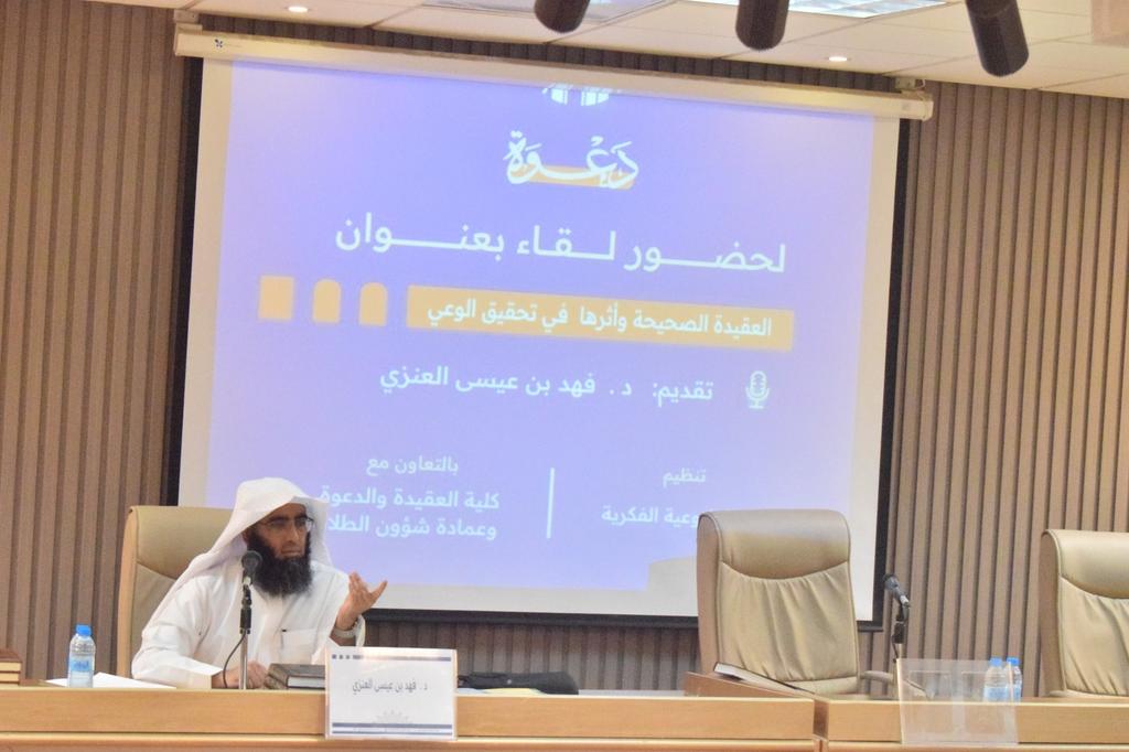 تنفيذ لقاء توعوي لطلاب كلية العقيدة والدعوة بالتعاون مع وحدة التوعية الفكرية يوم الأحد 29-ربيع الأول-1447