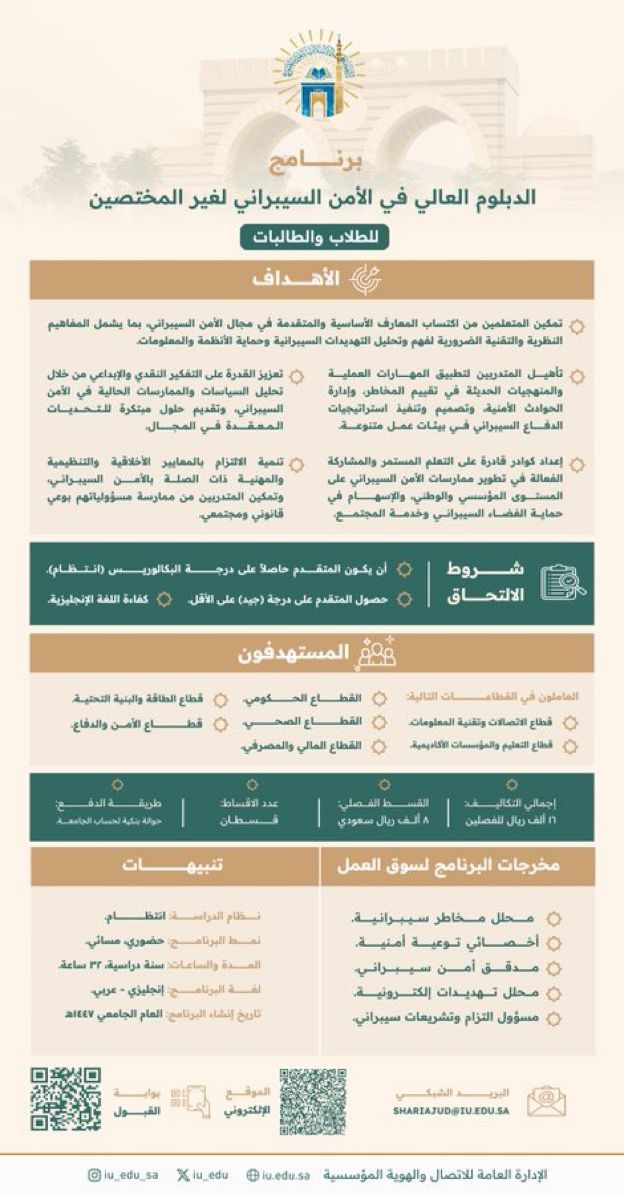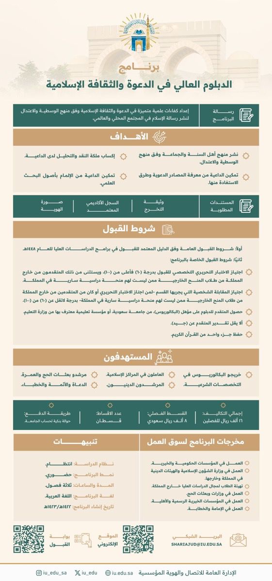 تعرف على تفاصيل برامج "الدبلوم العالي " بـالجامعة الإسلامية آخر موعد للتقديم: السبت 23 شوال 1447هـ