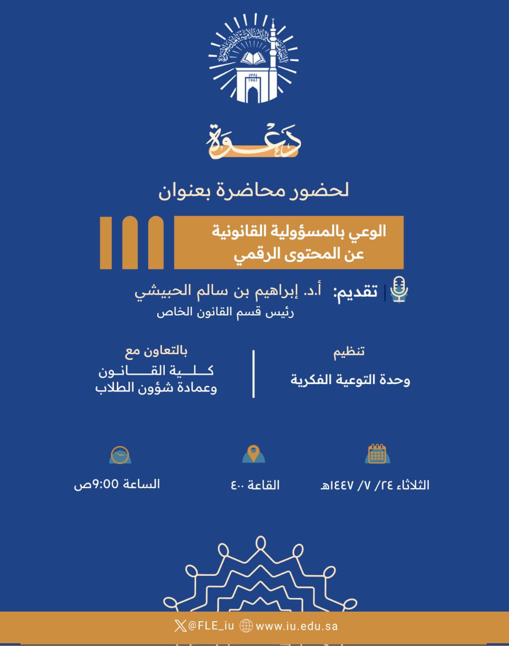 تنفيذ لقاء توعوي لطلاب كلية القانون بالتعاون مع وحدة التوعية الفكرية يوم الثلاثاء 24-رجب-1447