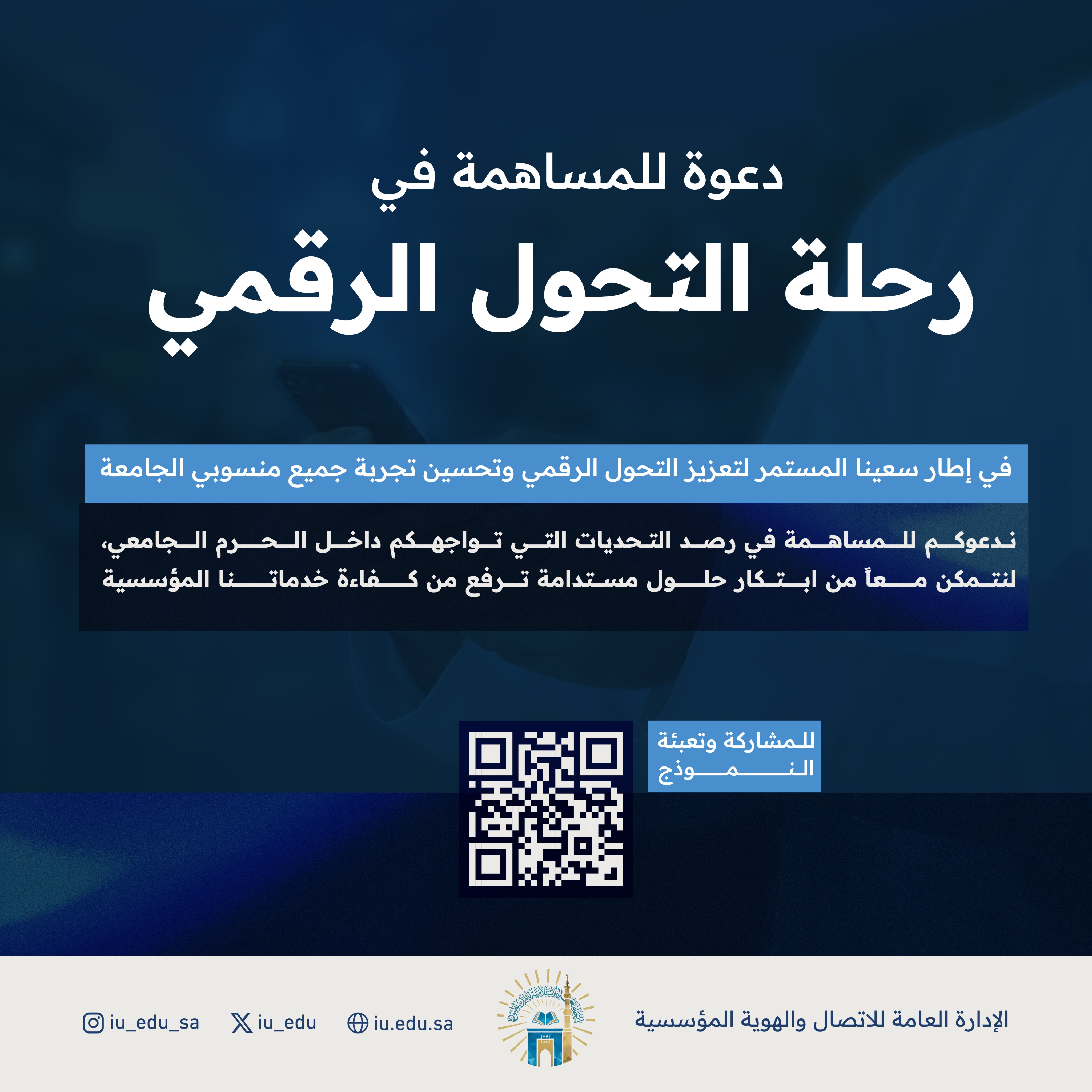 في إطار سعينا المستمر لتحسين تجربة منسوبي الجامعة، ندعوكم لرصد التحديات التي تواجهكم داخل الحرم الجامعي.