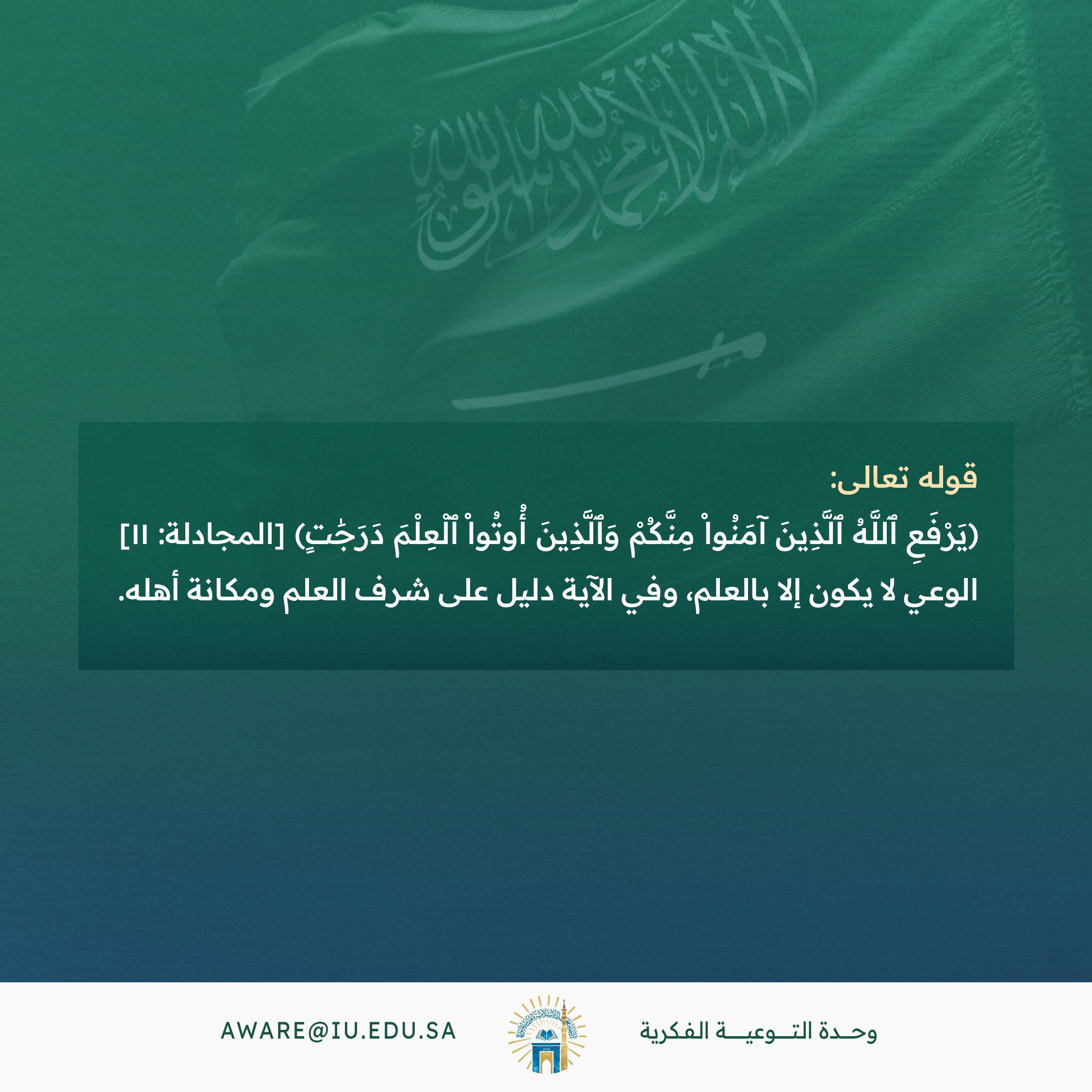 يرفع الله الذين آمنوا منكم والذين أوتوا العلم درجات