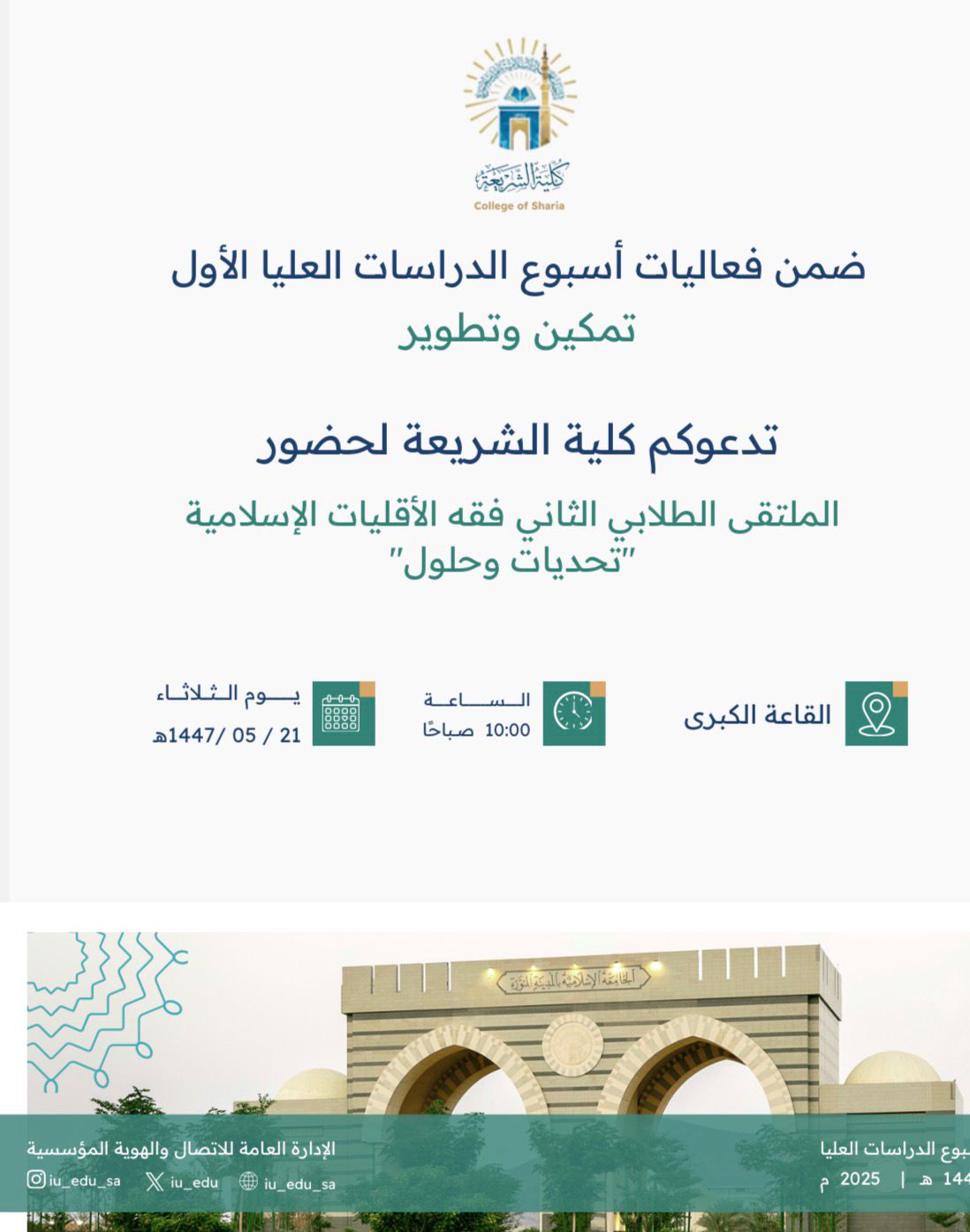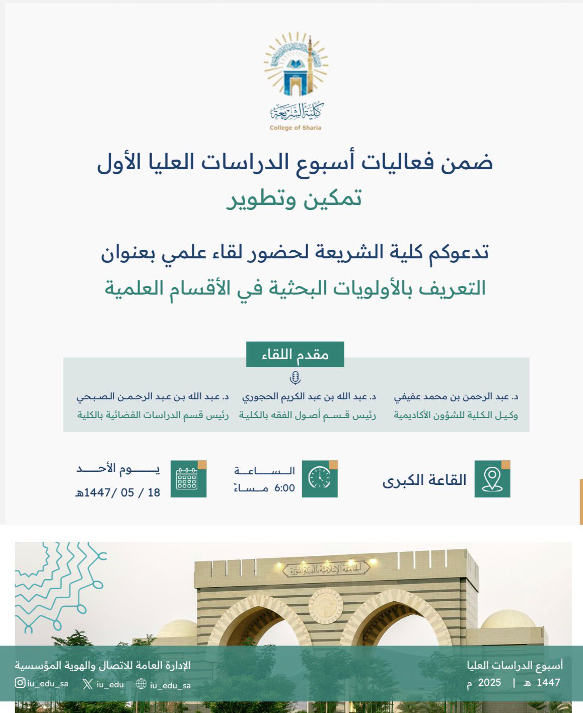 منارة عالمية رائدة معرفياً وبحثياً في علوم الشريعة.
