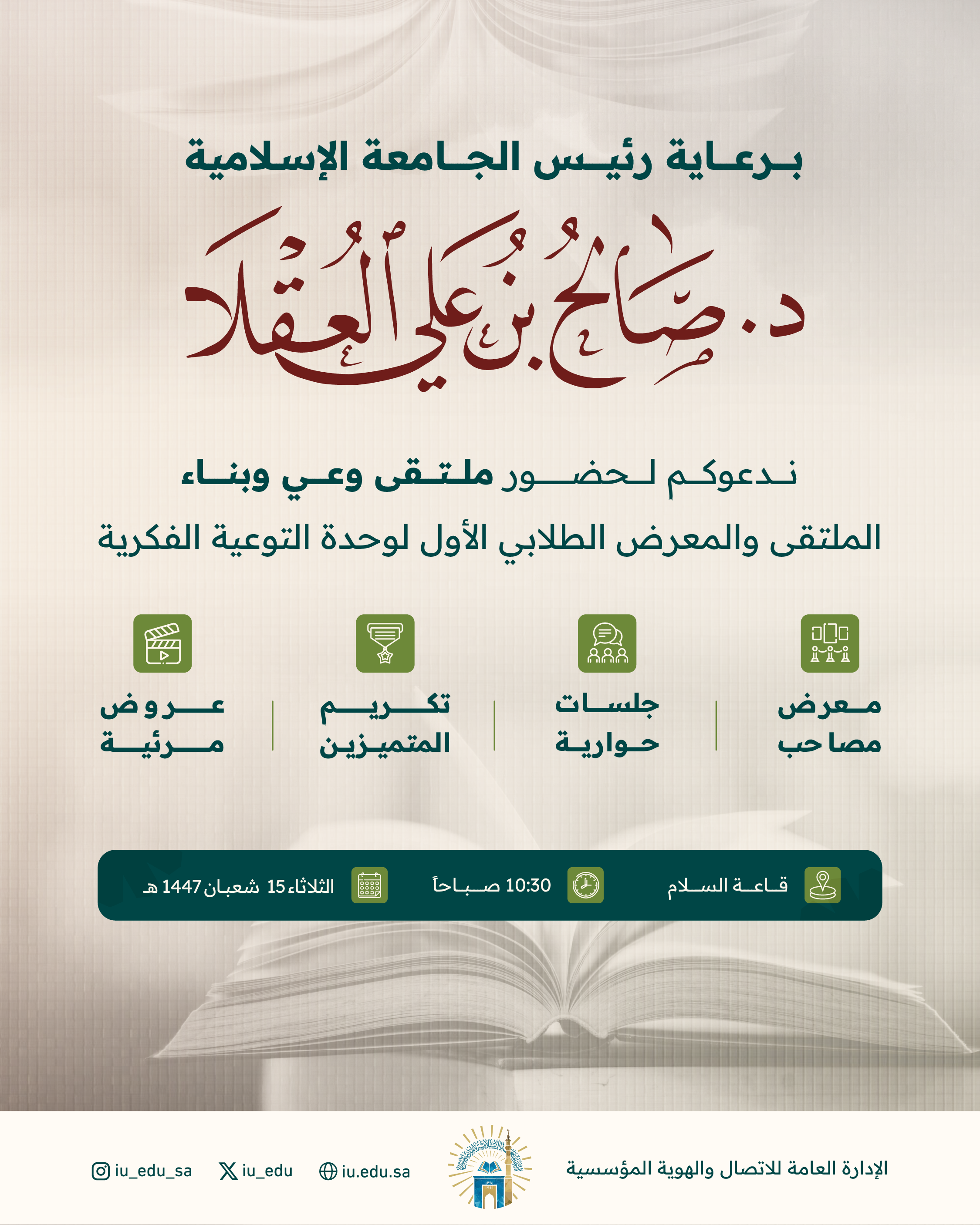 دعوة لحضور الملتقى والمعرض الطلابي الأول لوحدة التوعية الفكرية بعنوان «وعي وبناء»