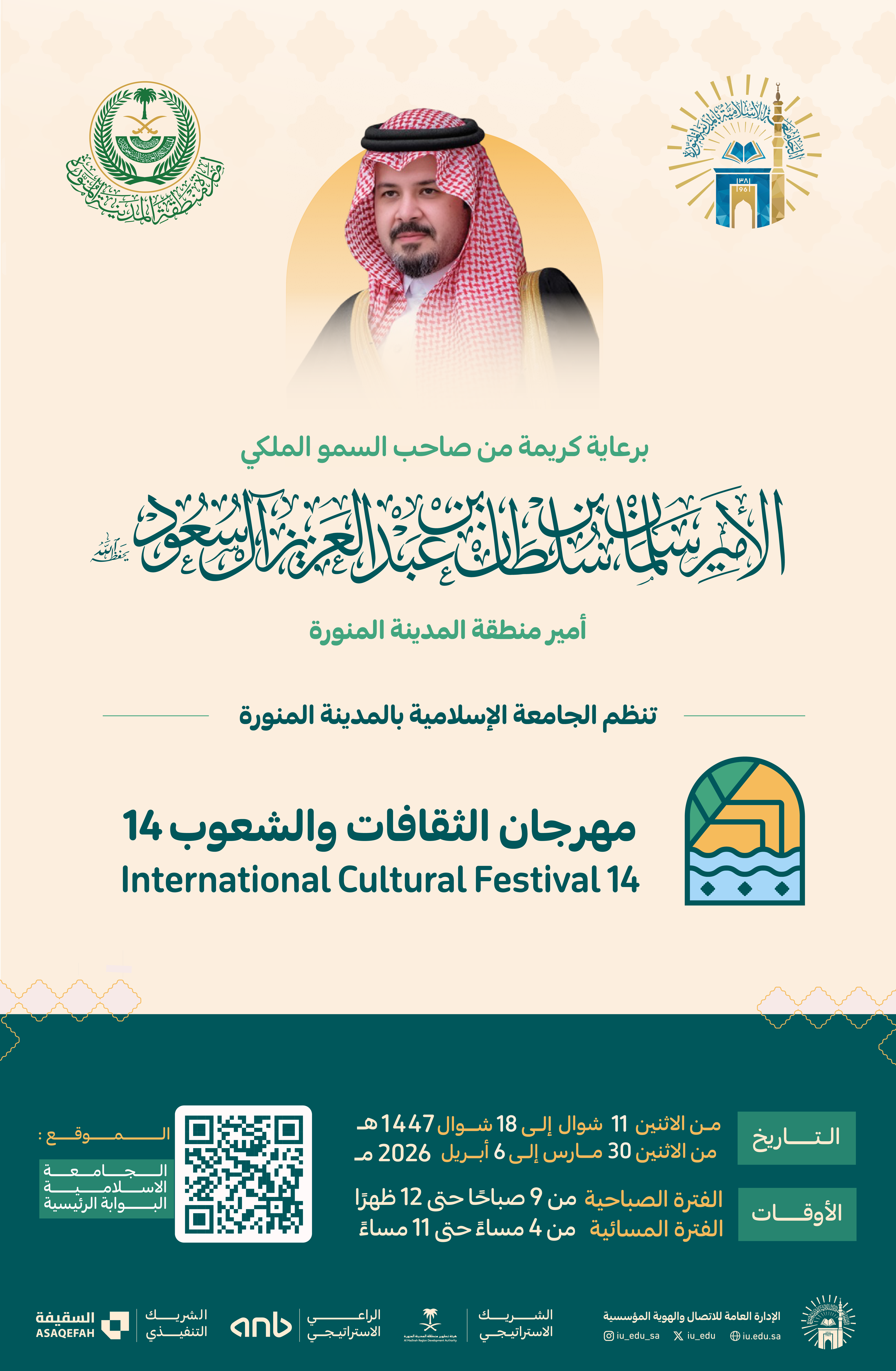 برعاية أمير منطقة المدينة المنورة.. تنطلق فعاليات مهرجان الثقافات والشعوب في نسخته الرابعة عشرة خلال الفترة من 11-18 شوال 1447هـ
