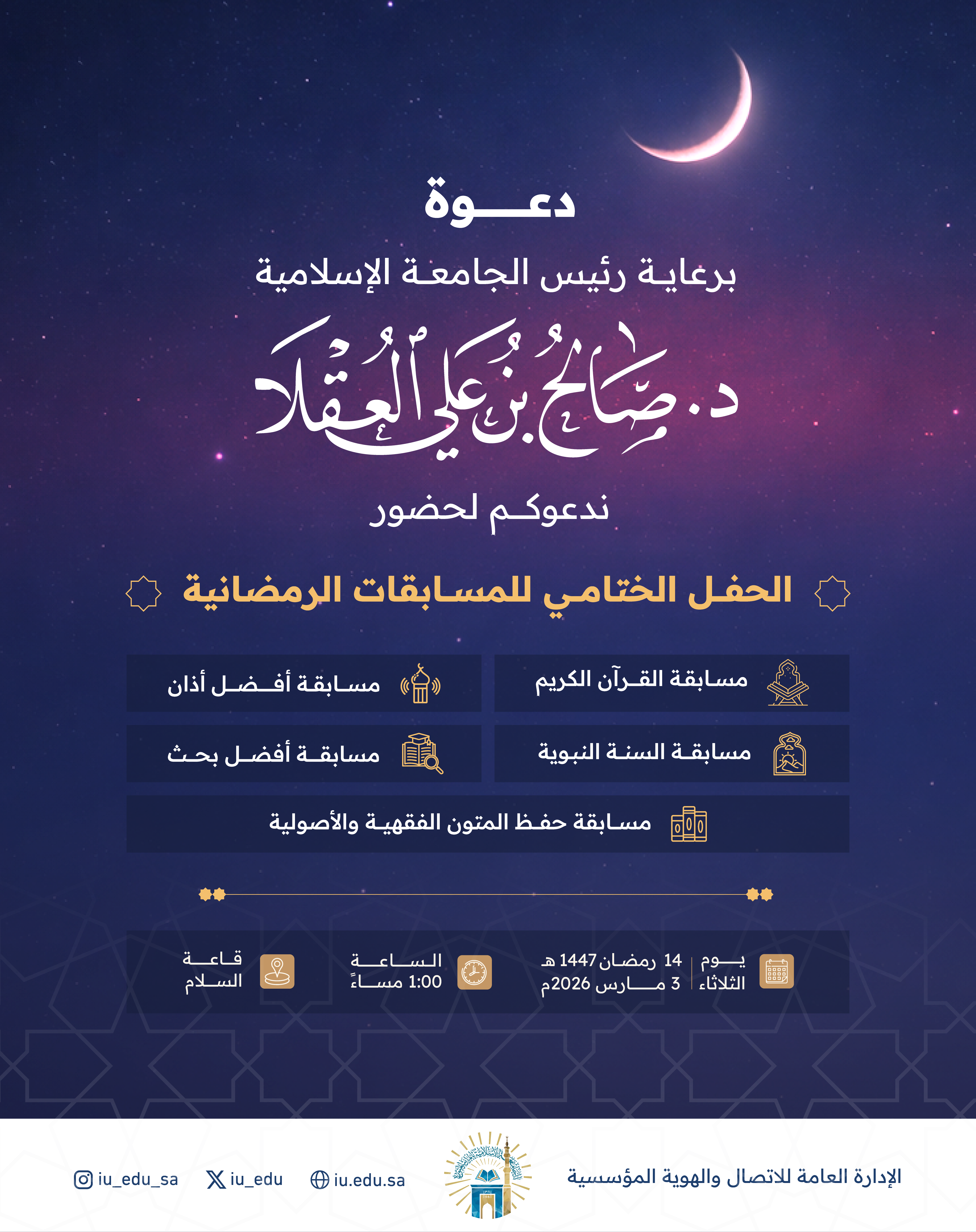 دعوة لحضور الحفل الختامي للمسابقات الرمضانية