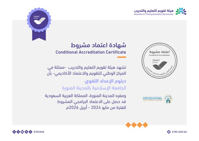 شهادة اعتماد كامل لدبلوم الإعداد اللغوي