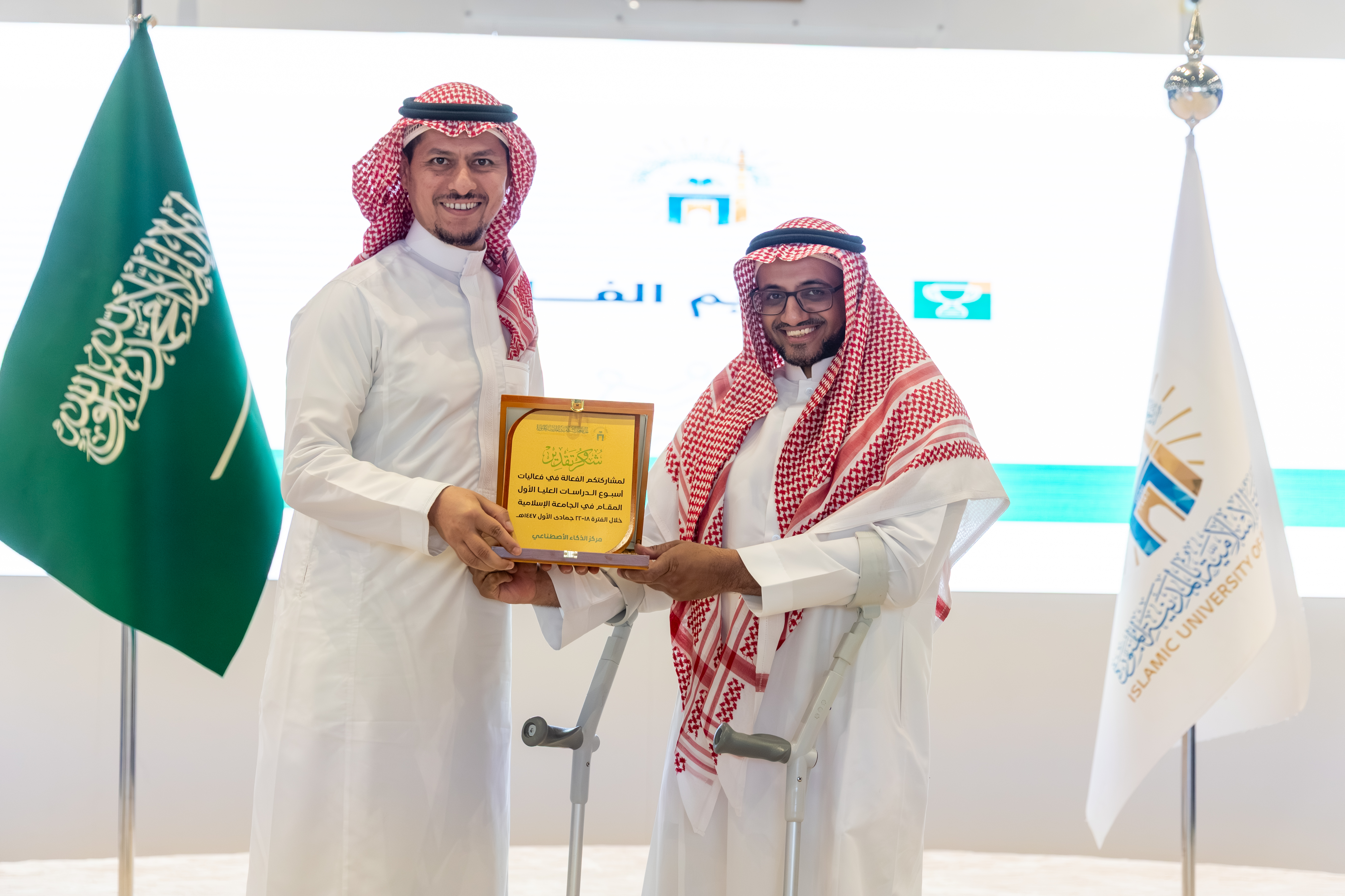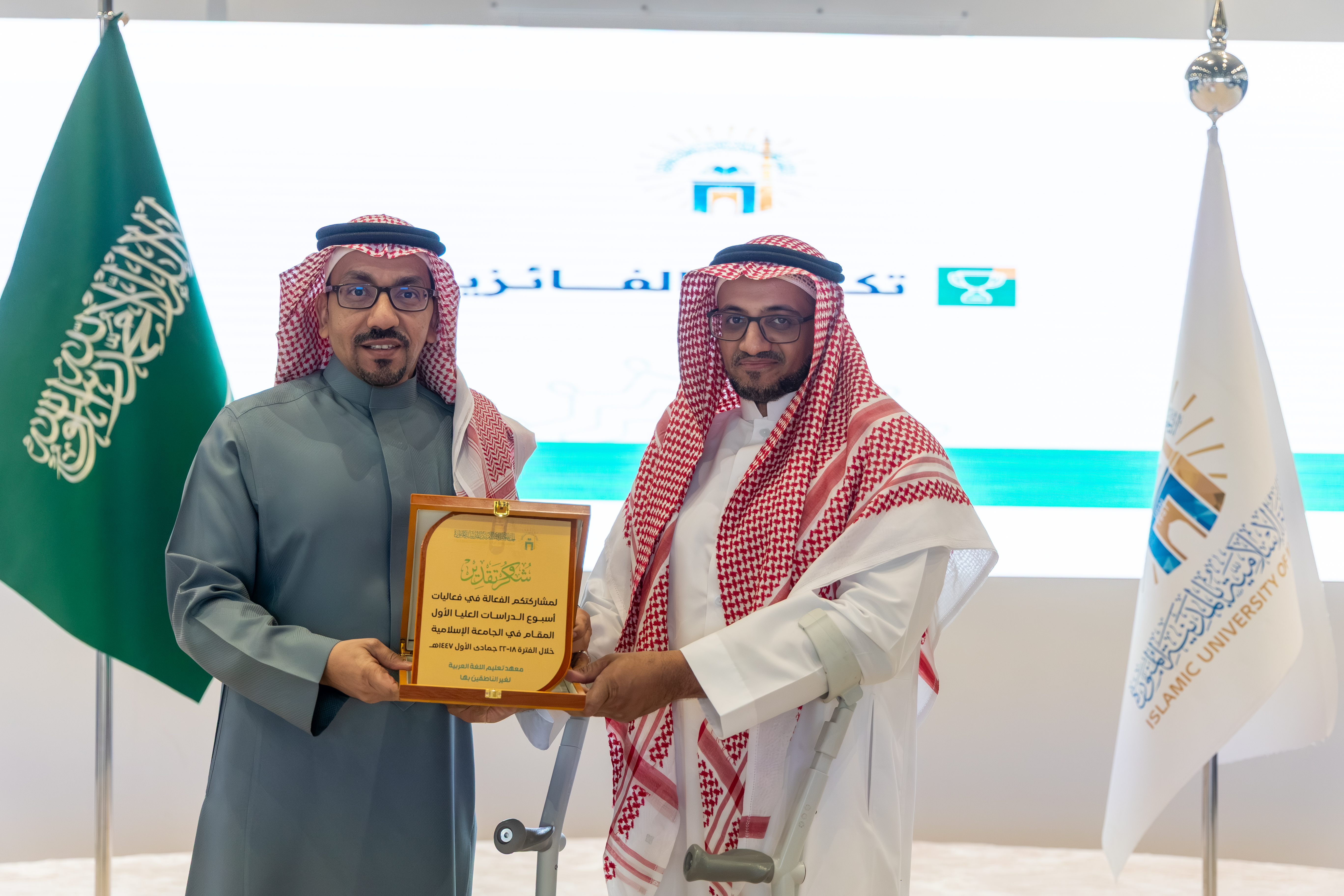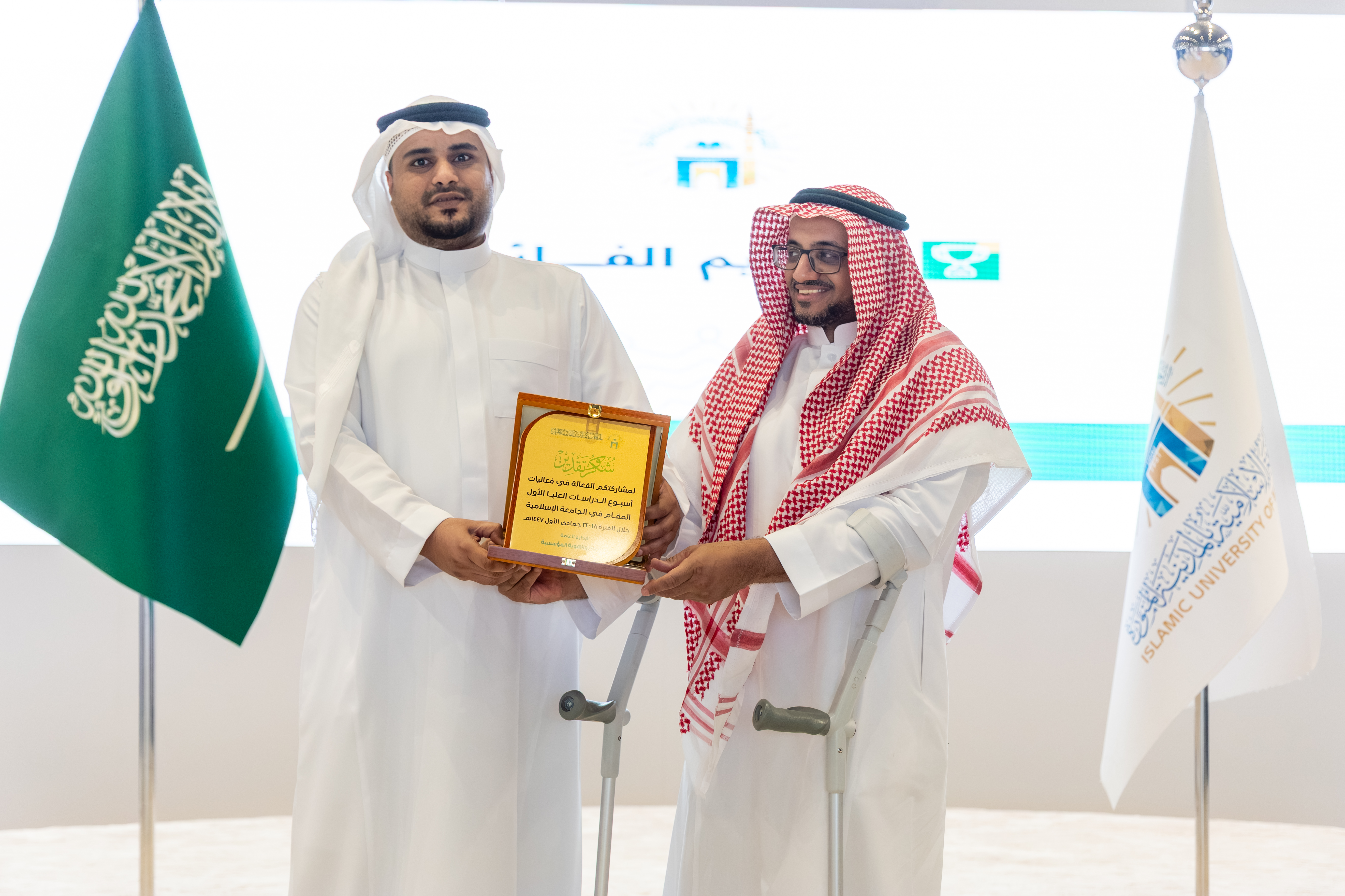 وشهد الحفل كذلك تكريم الفائزين بجائزة أفضل رسالة علمية في كليات: الشريعة، القرآن، العقيدة، القانون، الحاسب، الهندسة، والعلوم، إضافة إلى تكريم الطلاب الفاعلين من نادي الدراسات العليا تقديرًا لإسهاماتهم في نجاح الأسبوع.