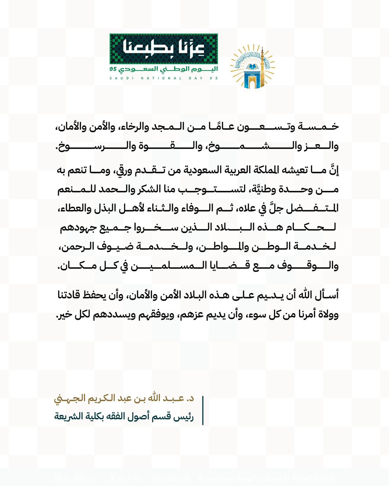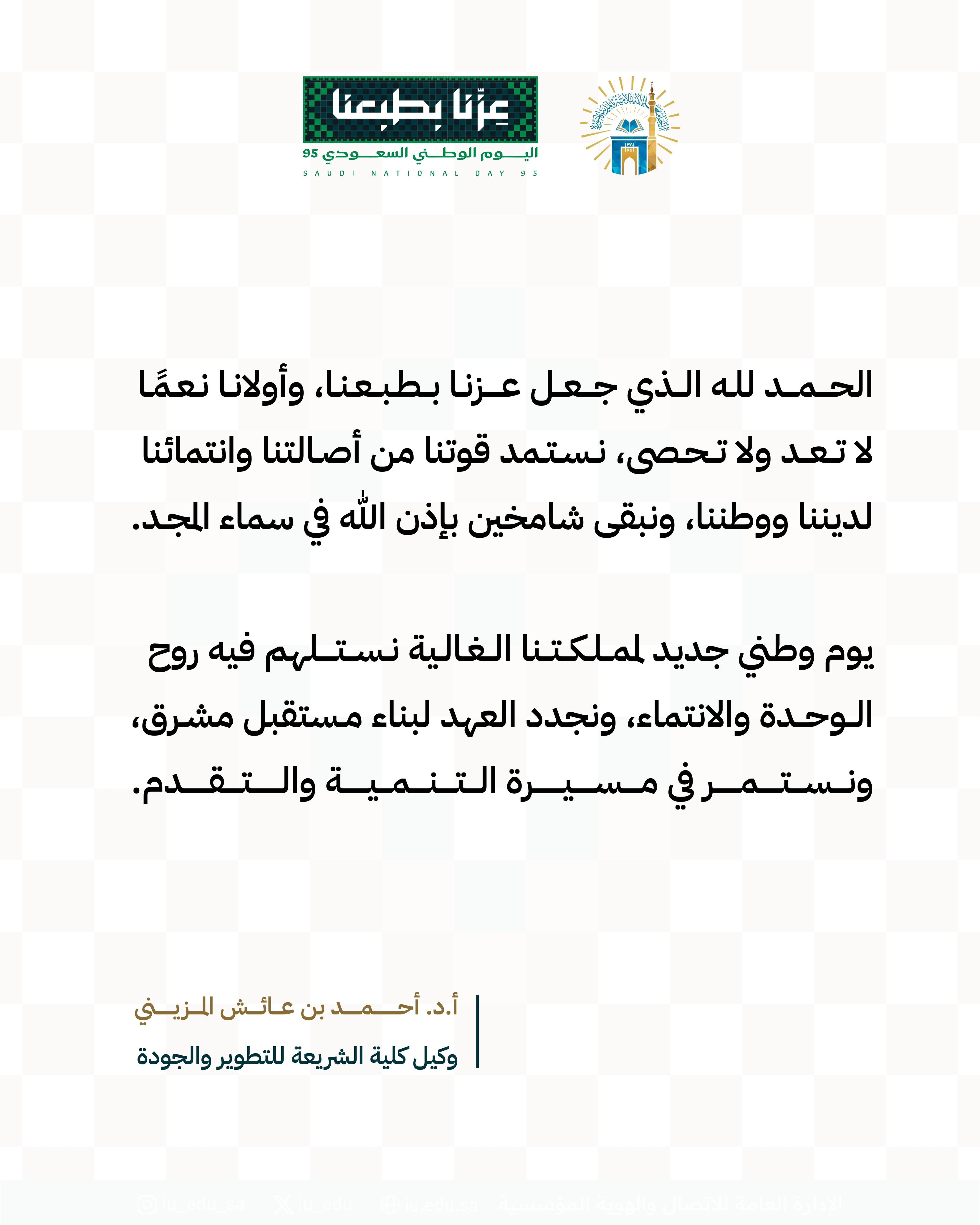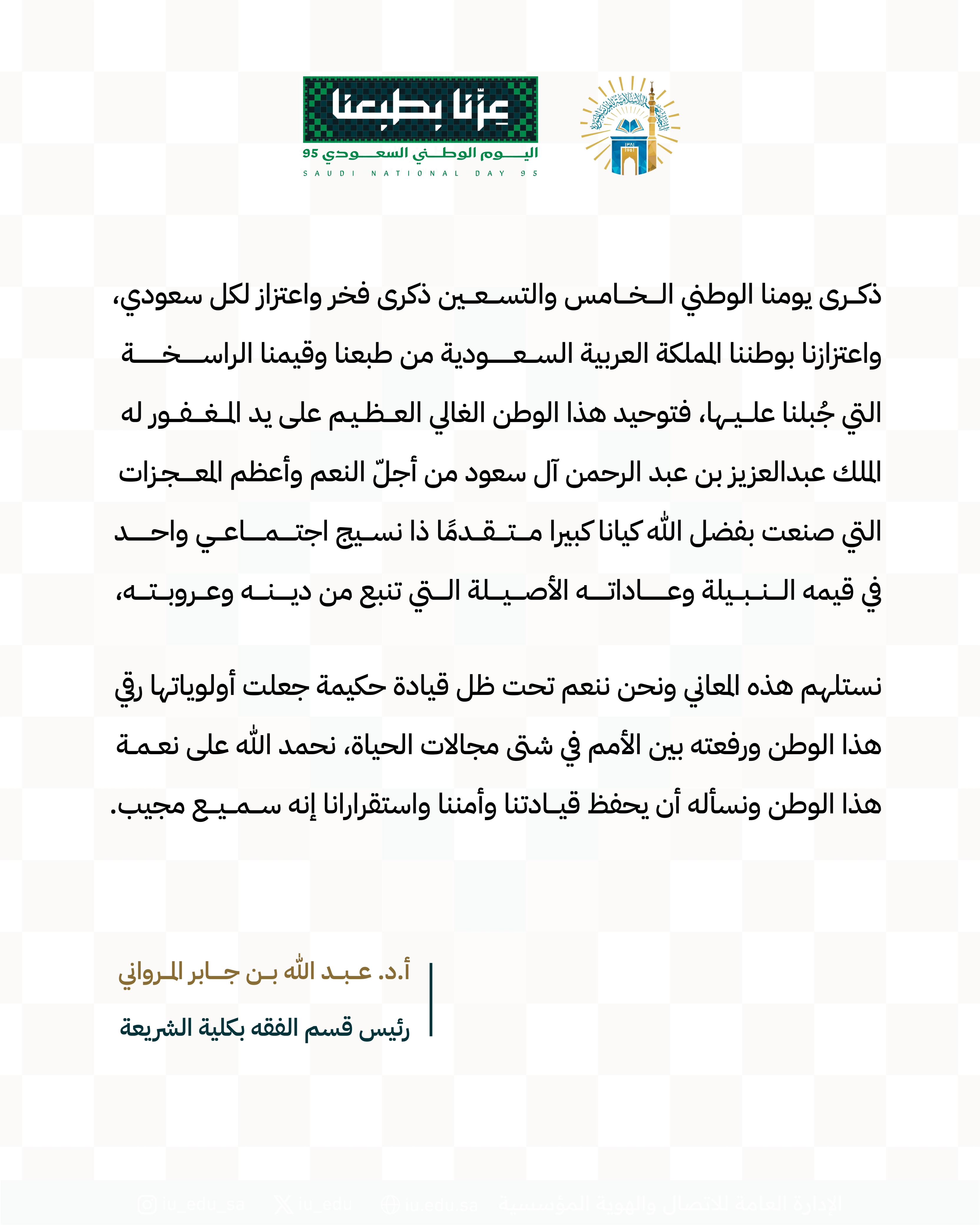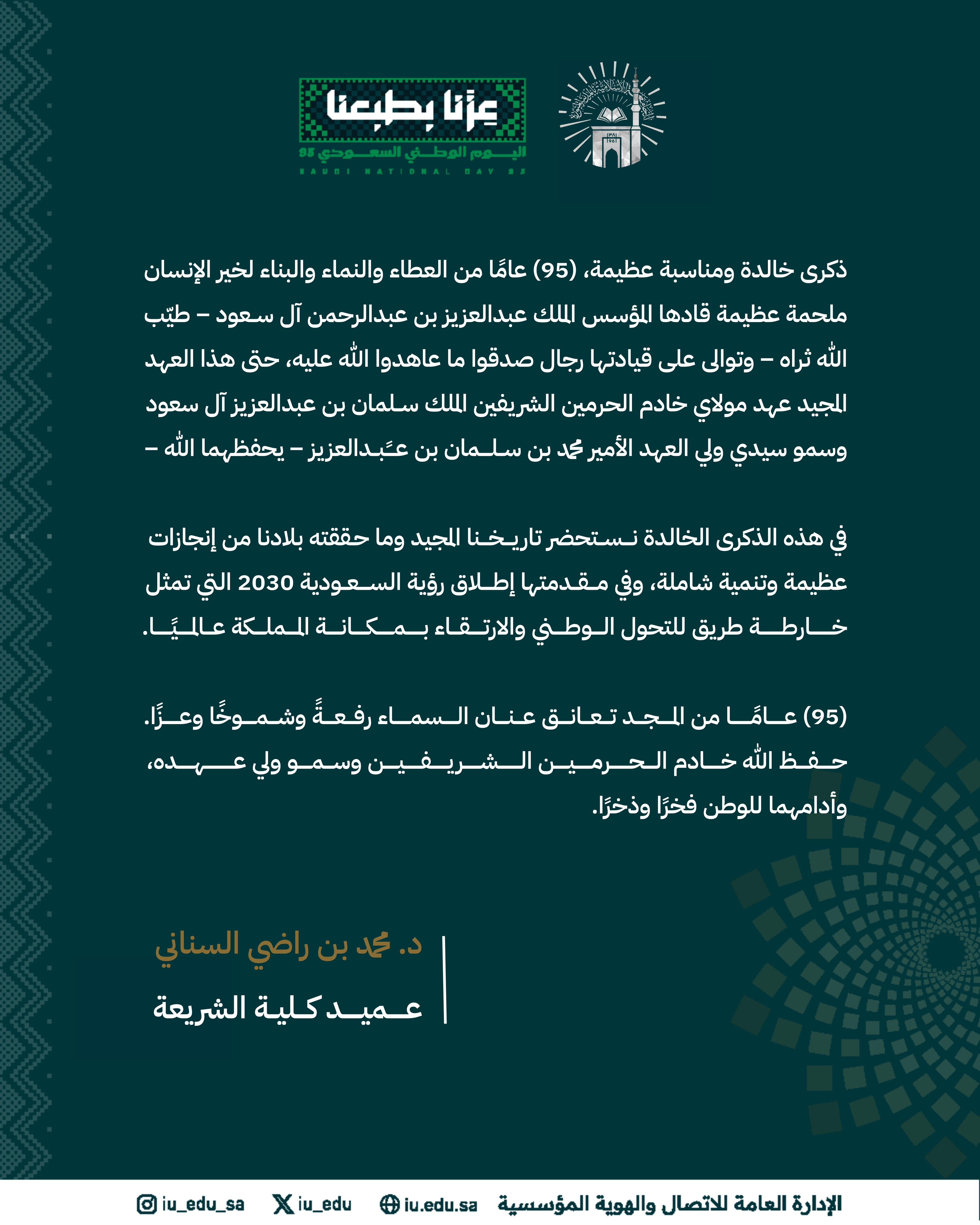 كلمات قيادات كلية الشريعة بمناسبة اليوم الوطني