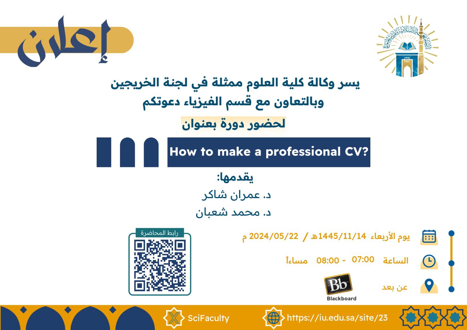 إعلان إقامة دورة بعنوان ( ? How to Make a Professional CV )