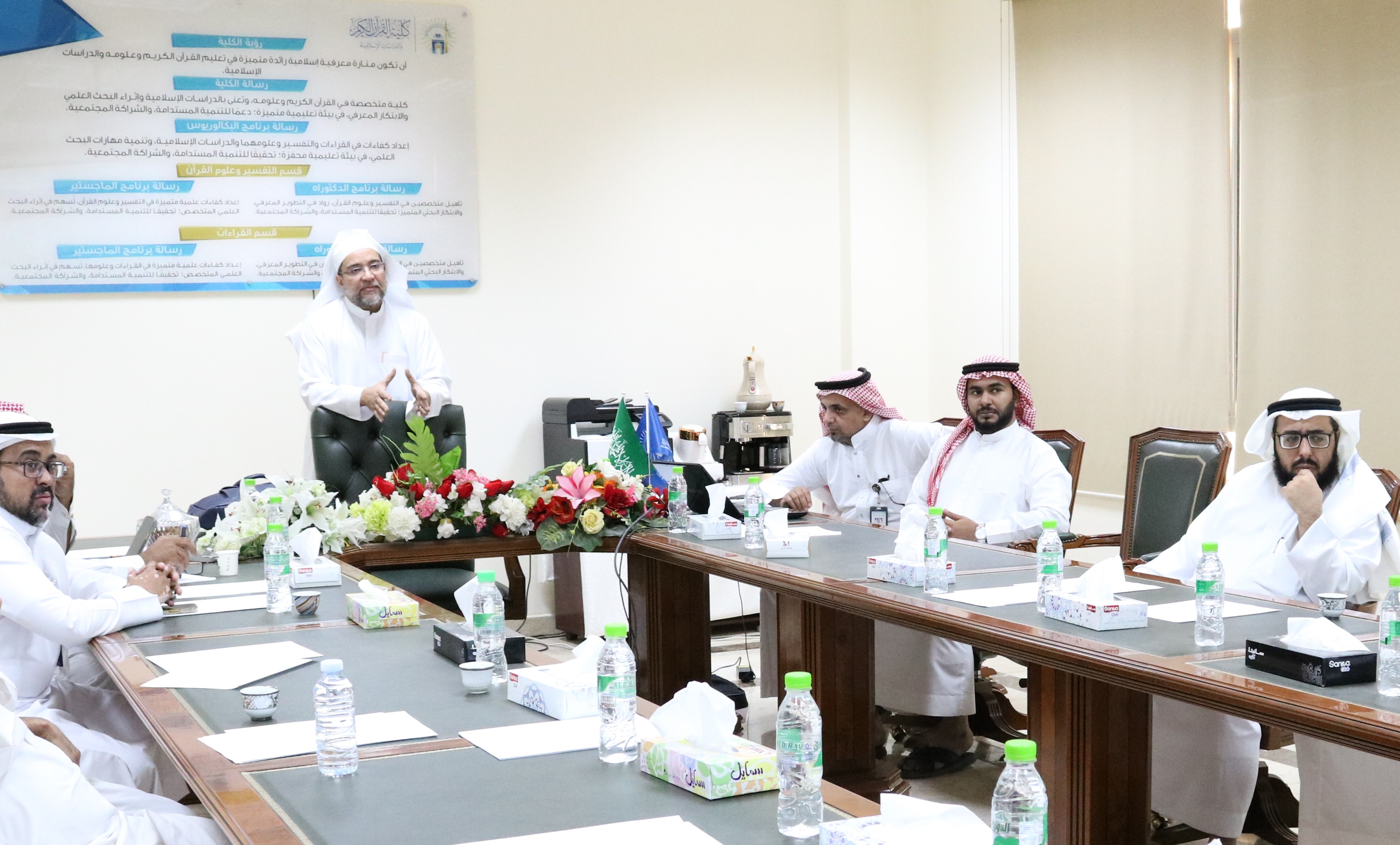 أقامت كلية القران الكريم يوم الاثنين الموافق:1446/5/23هـ، في تمام الساعة: 10 صباحًا، لقاءً بعنوان: بناء الخطط والمبادرات، في مقر مجلس الكلية، نفذها أ.د. أحمد بن عبدالله سليماني الأستاذ بقسم القراءات والتي استهدفت الكادر الإداري بالكلية.