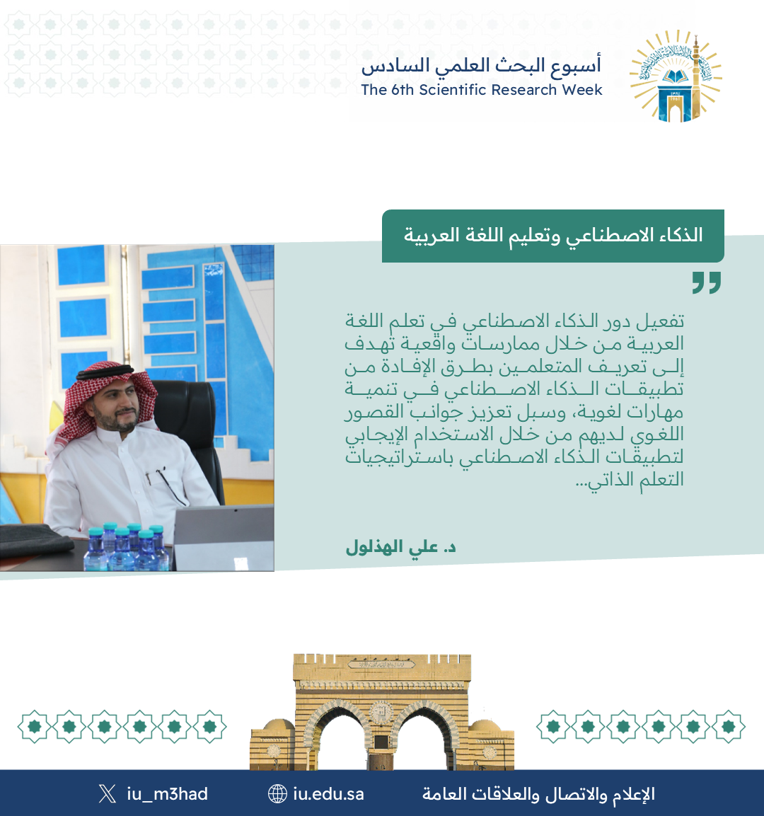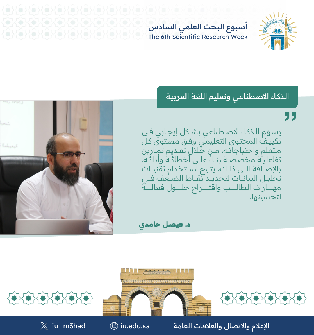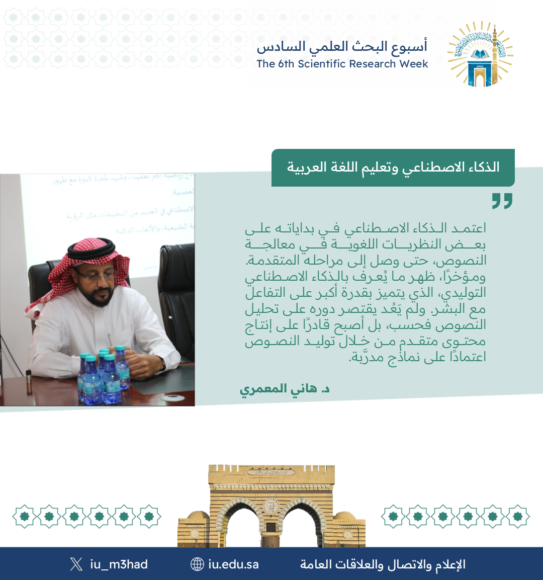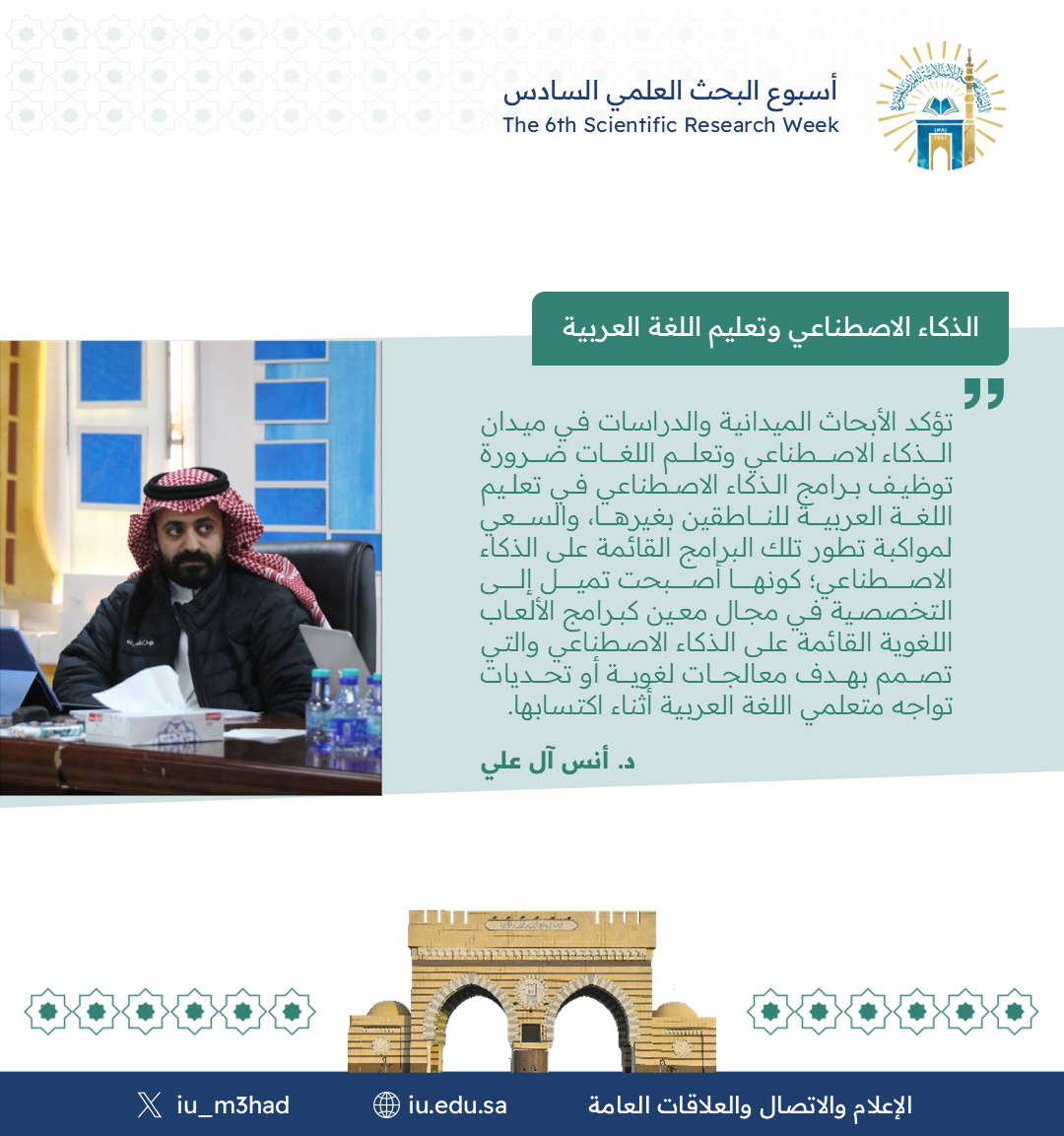 أقام معهد تعليم اللغة العربية ضمن فعاليات أسبوع البحث العلمي السادس لقاء مشترك مع كلية الحاسب بعنوان:
