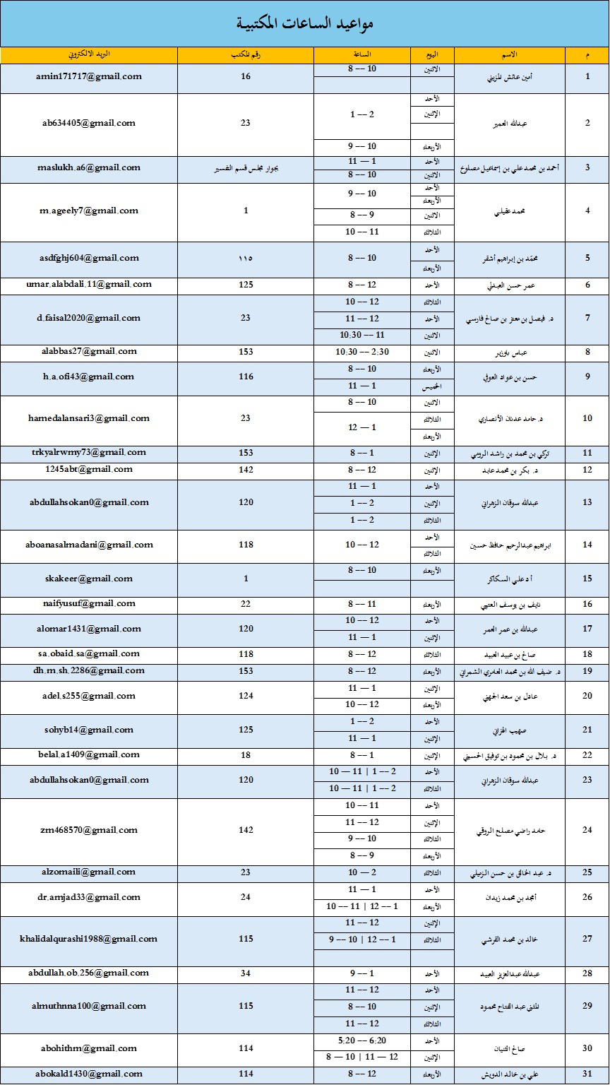 الساعات المكتبية لأعضاء قسم التفسير وعلوم القرآن