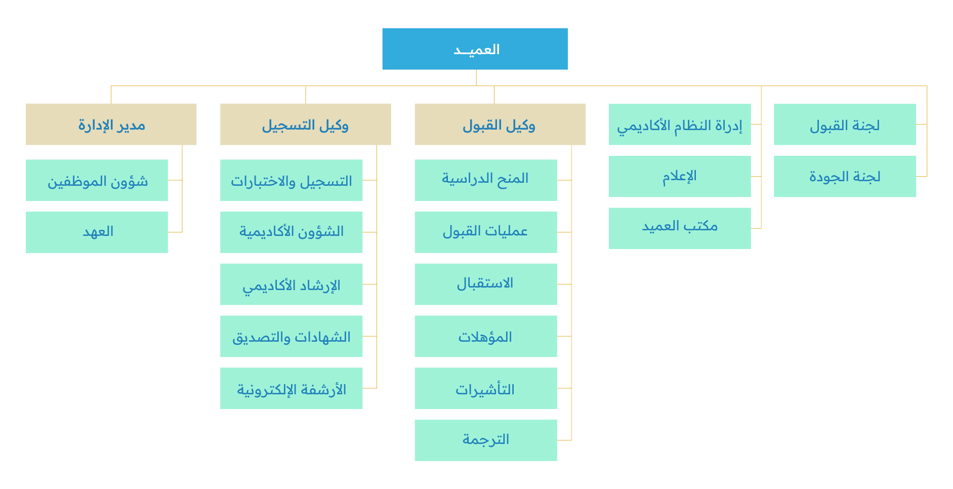 الهيكل التنظيمي لعمادة القبول والتسجيل