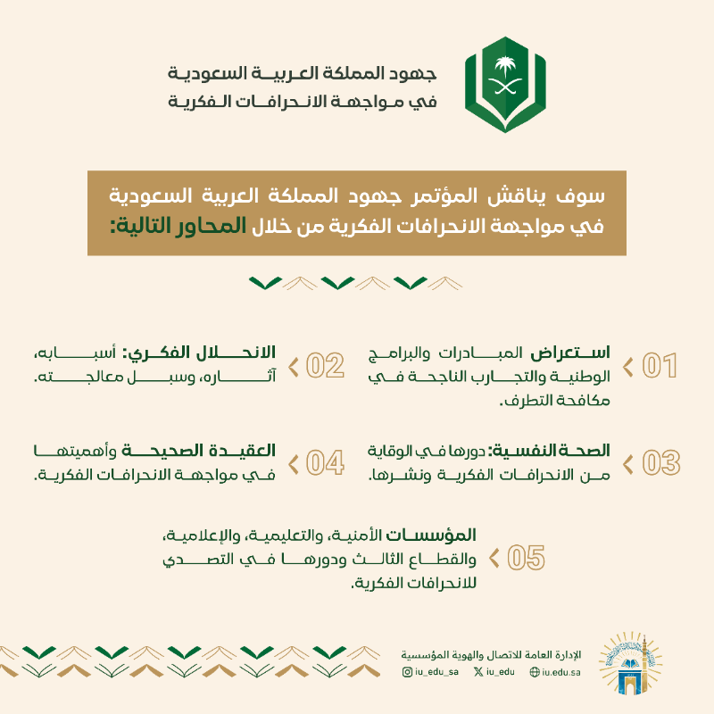 تعرّف على محاور مؤتمر جهود المملكة العربية السعودية في مواجهة الانحرافات الفكرية