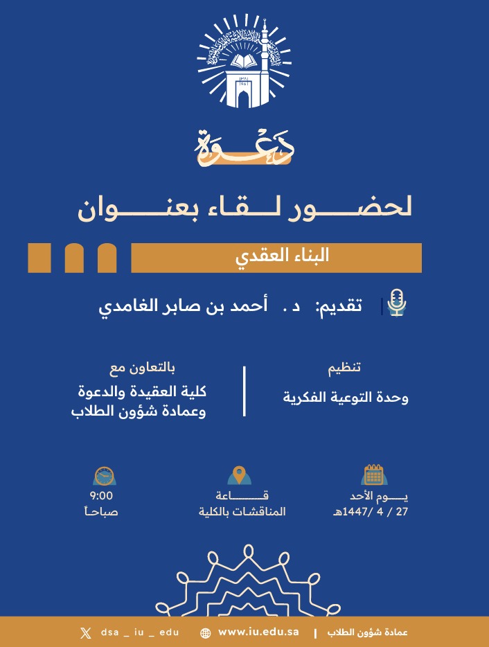 تنفيذ لقاء توعوي لطلاب كلية العقيدة والدعوة بالتعاون مع وحدة التوعية الفكرية يوم الأحد 27-ربيع الثاني-1447