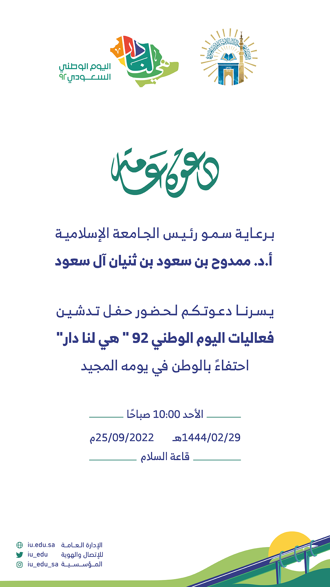 دعوة لحضور حفل تدشين فعاليات اليوم الوطني 92 " هي لنا دار "