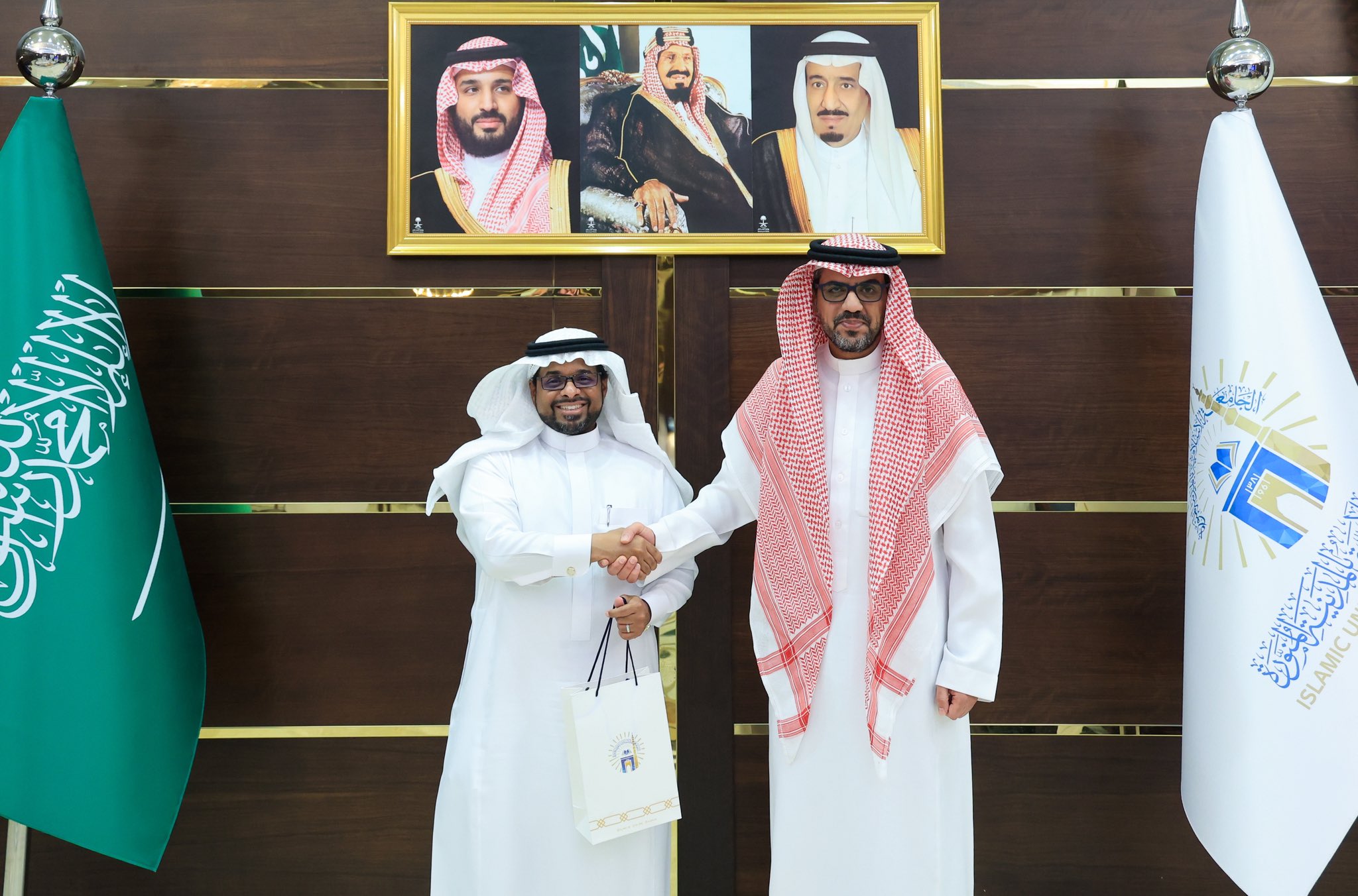 كرّم رئيس الجامعة الإسلامية الدكتور صالح بن علي العقلا، الدكتور خالد المحمدي الحاصل على الميدالية الذهبية مع مرتبة الشرف في معرض جنيف الدولي للاختراعات 2025 عن ابتكاره "نظام البناء المرن"، والدكتور حسام الحربي الذي حقق الميدالية البرونزية في معرض جنيف الدولي 2025 باختراع "مولد الشحنات الكهربائية لتطبيقات الجهد العالي ذات الطاقة المنخفضة".