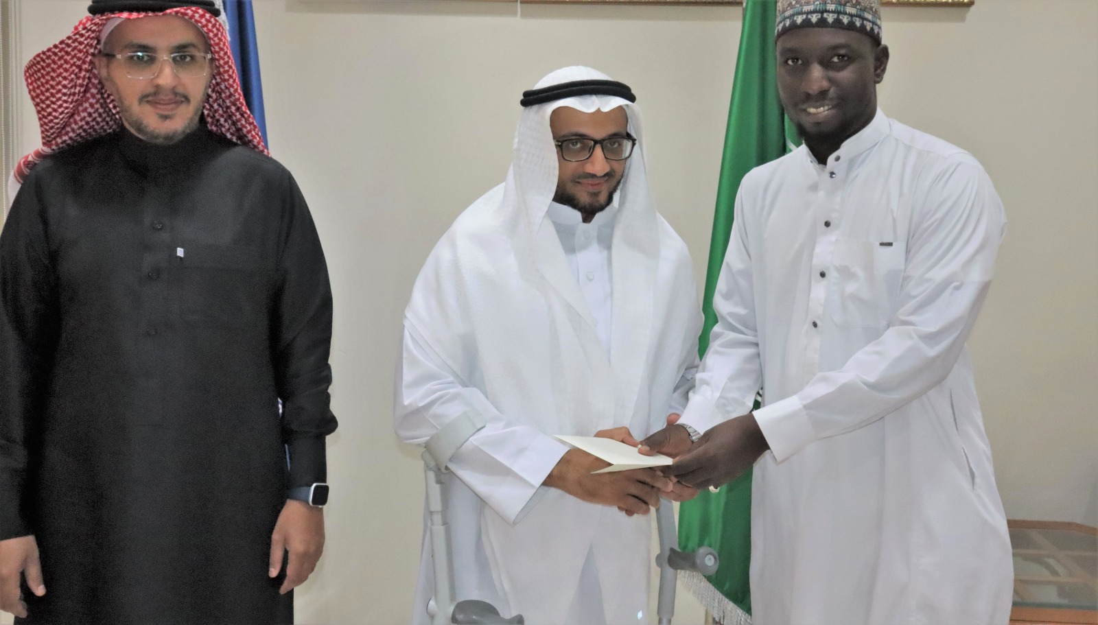 كرّم سعادة عميد الدراسات العليا والبحث العلمي أ.د. أحمد بن سعيد العواجيّ عدداً من طلاب الدراسات العليا المتميِّزين المتعاونين في إنجاح أسبوع البحث العلمي السادس، بحضور سعادة وكيل العمادة للبحث العلمي د. حمد المحمّديّ
