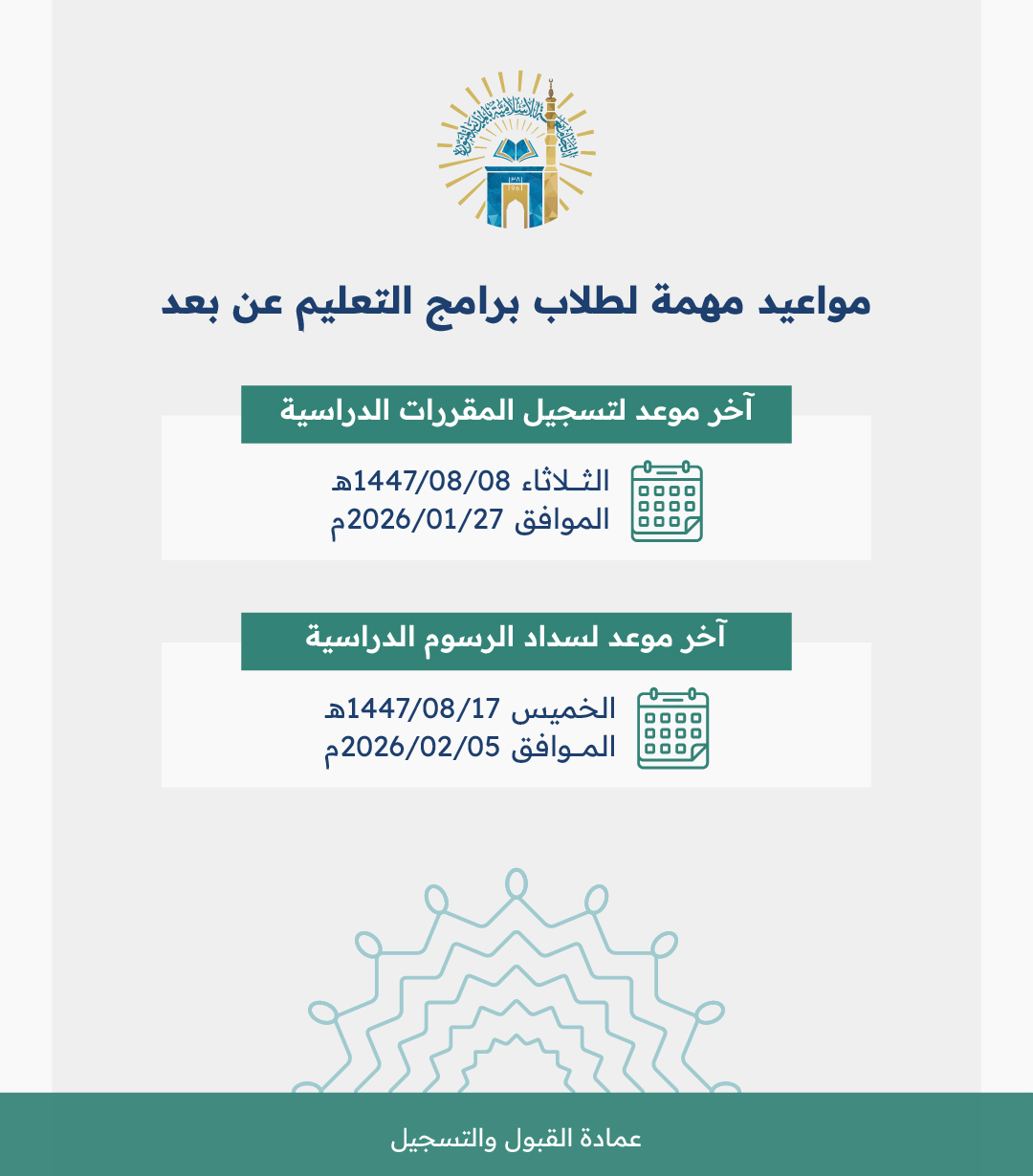 لطلاب برامج التعليم عن بعد: آخر موعد لتسجيل المقررات الدراسية وسداد الرسوم