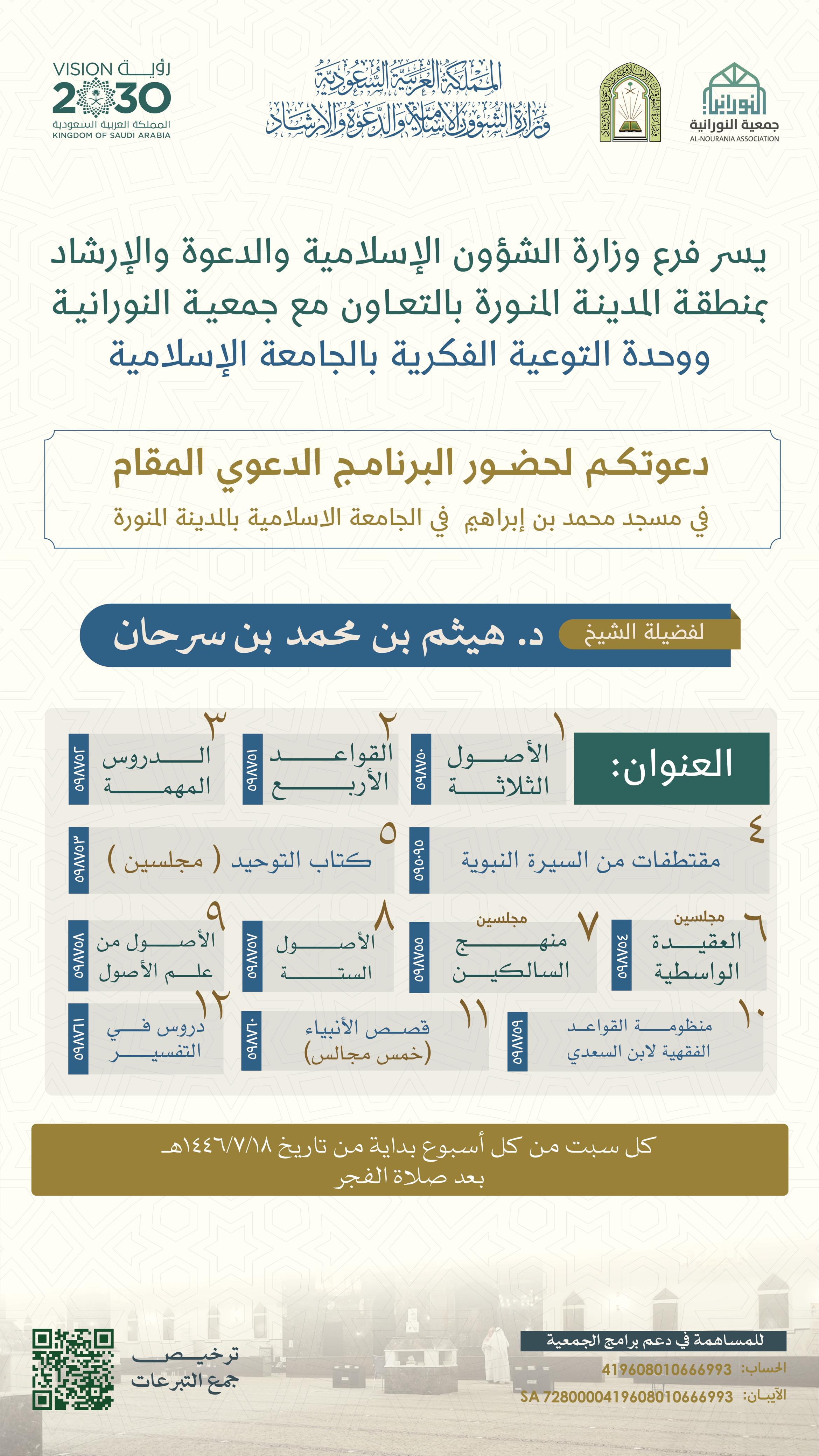 يسر وحدة التوعية الفكرية دعوتكم لحضور البرنامج العلمي الدعوي لفضيلة د. هيثم سرحان