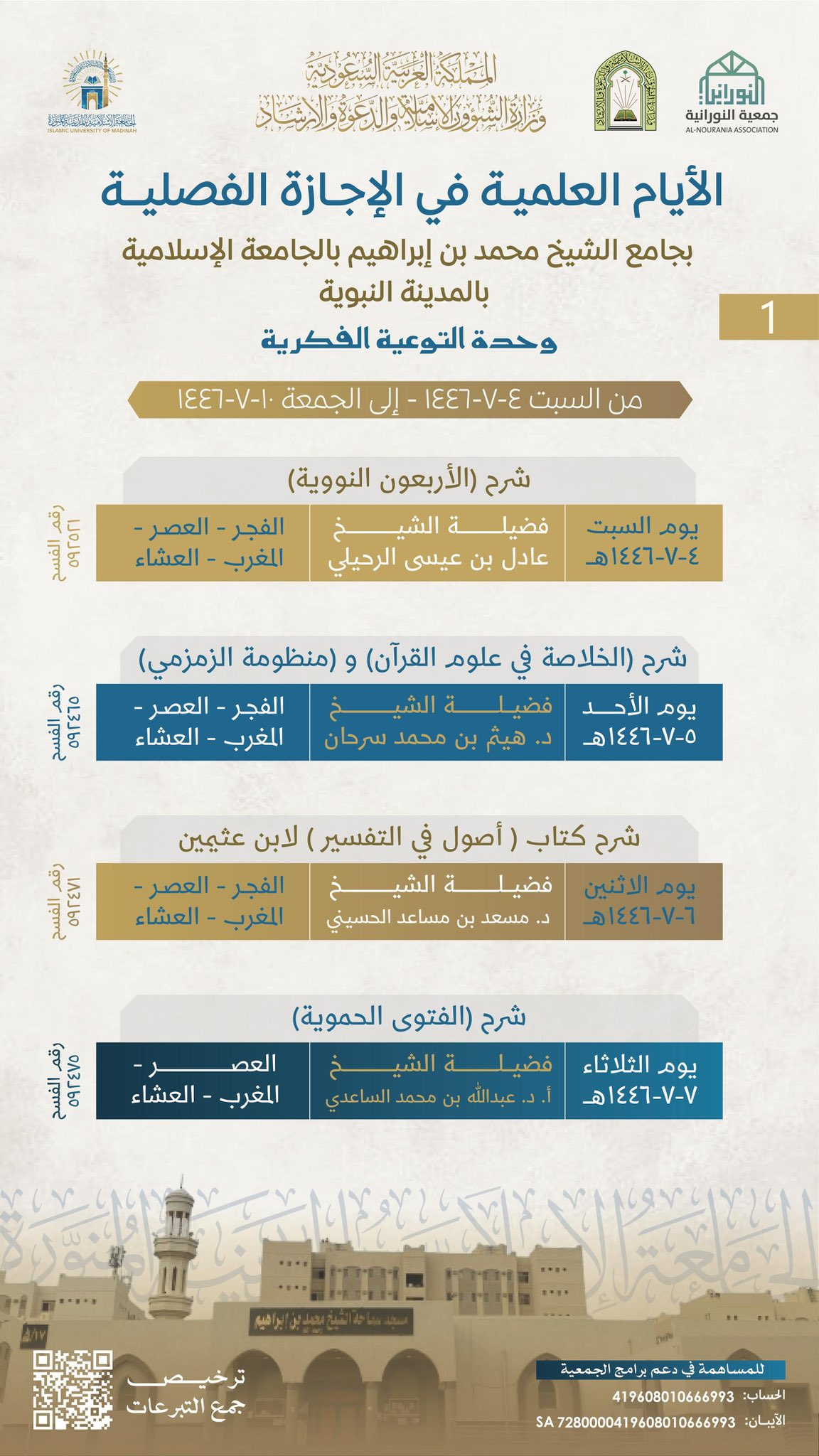 يسر وحدة التوعية الفكرية دعوتكم لحضور برنامج "الأيام العلمية في الإجازة الفصلية" ، وفق البرنامج الزمني المرفق .