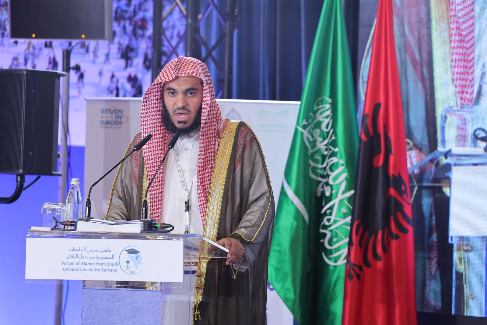 أعلن ملتقى خريجي الجامعات السعودية من دول البلقان اليوم الثلاثاء 08 / 07 / 2025م، البيان الختامي الذي تضمّن أهم التوصيات والمخرجات التي تُوصل إليها خلال جلسات الملتقى وندواته وقد ألقاه بالنيابة عن المشاركين مدير الملتقى د. عادل بن عبدالله المطرودي، وبحضور معالي رئيس جامعة الإمام محمد بن سعود الإسلامية أ. د. أحمد بن سالم العامري، ورئيس الجامعة الإسلامية د. صالح بن عبدالله العقلا ورئيس جامعة أم القرى أ. د. معدي بن محمد آل مذهب، بالإضافة إلى خريجي الجامعات السعودية من مختلف دول البلقان.