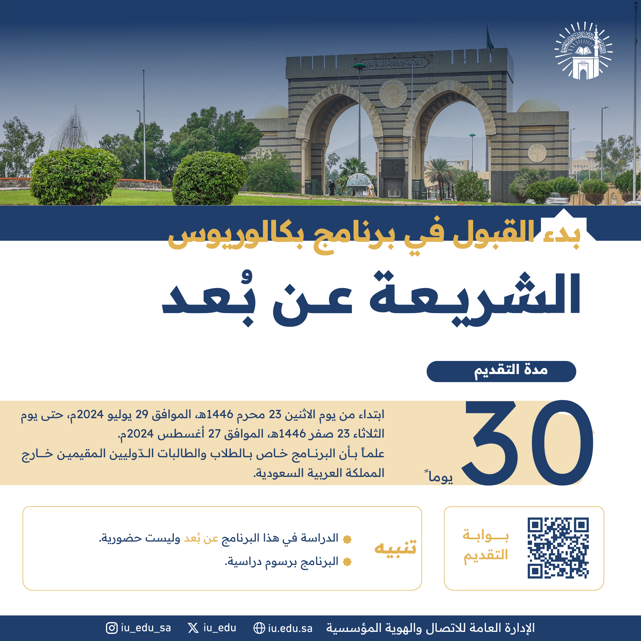 للتقديم: https://distancelearning.iu.edu.sa