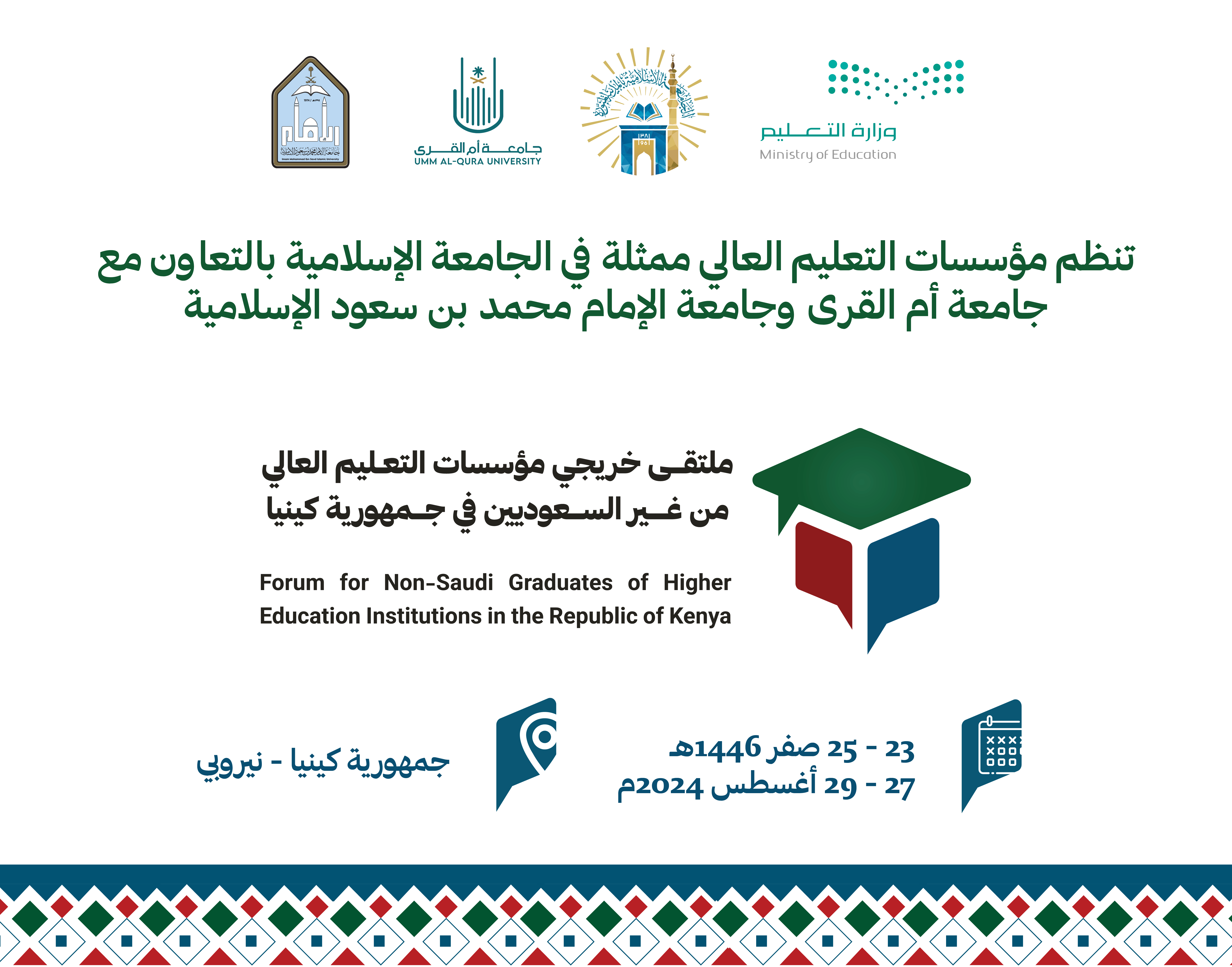 ضمن جهود الجامعات السعودية في استمرار تواصلها مع خريجيها، تنظم مؤسسات التعليم العالي ممثلة في الجامعة الإسلامية بالتعاون مع جامعة أم القرى و جامعة الإمام محمد بن سعود الإسلامية ملتقى خريجي مؤسسات التعليم العالي من غير السعوديين في جمهورية كينيا.