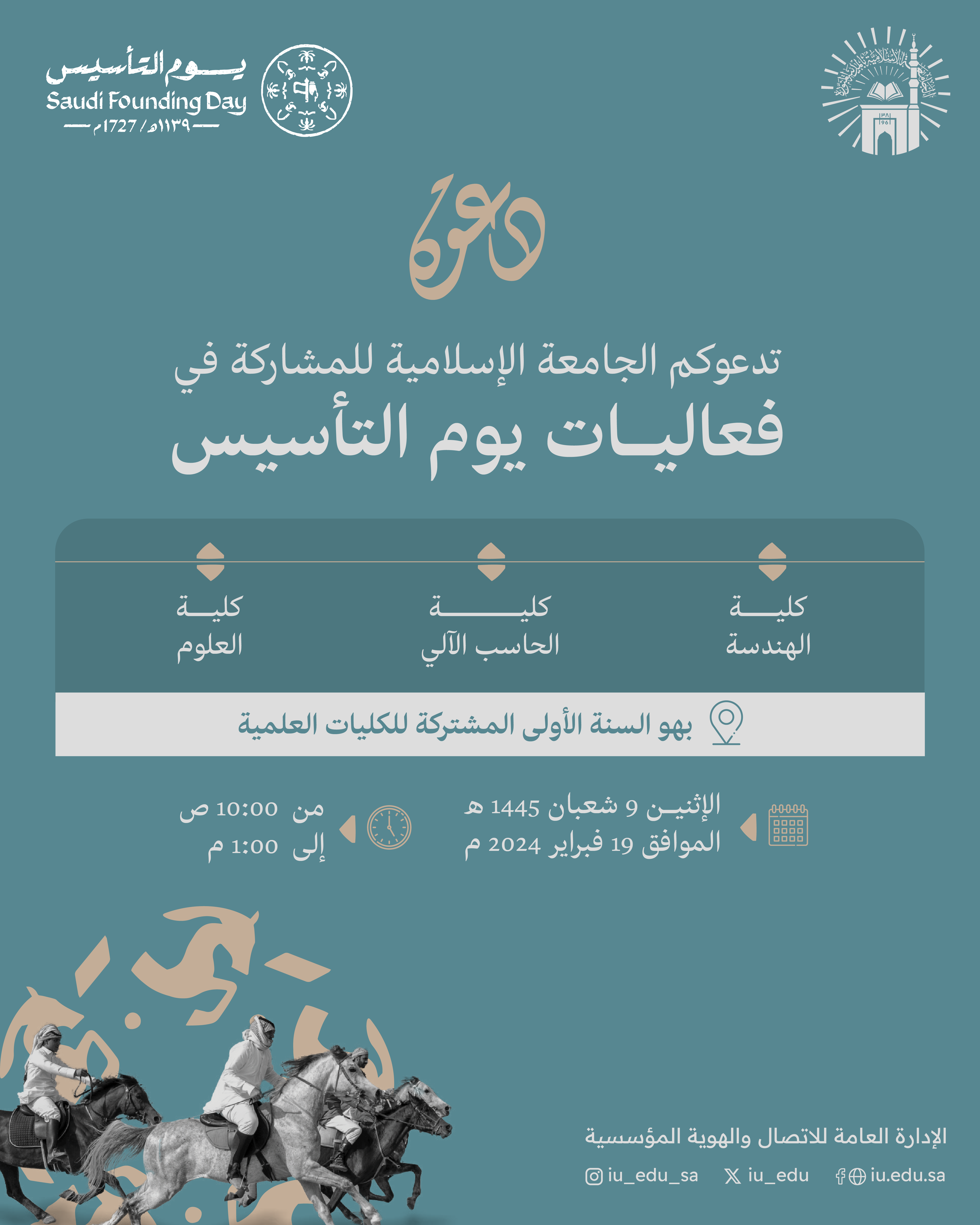 تدعوكم الجامعة الإسلامية للحضور والمشاركة في فعاليات يوم التأسيس.
