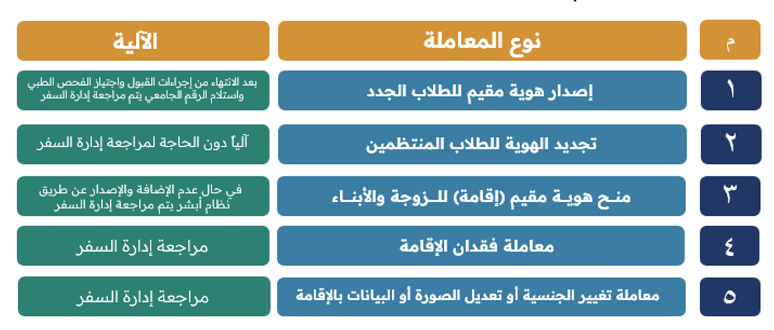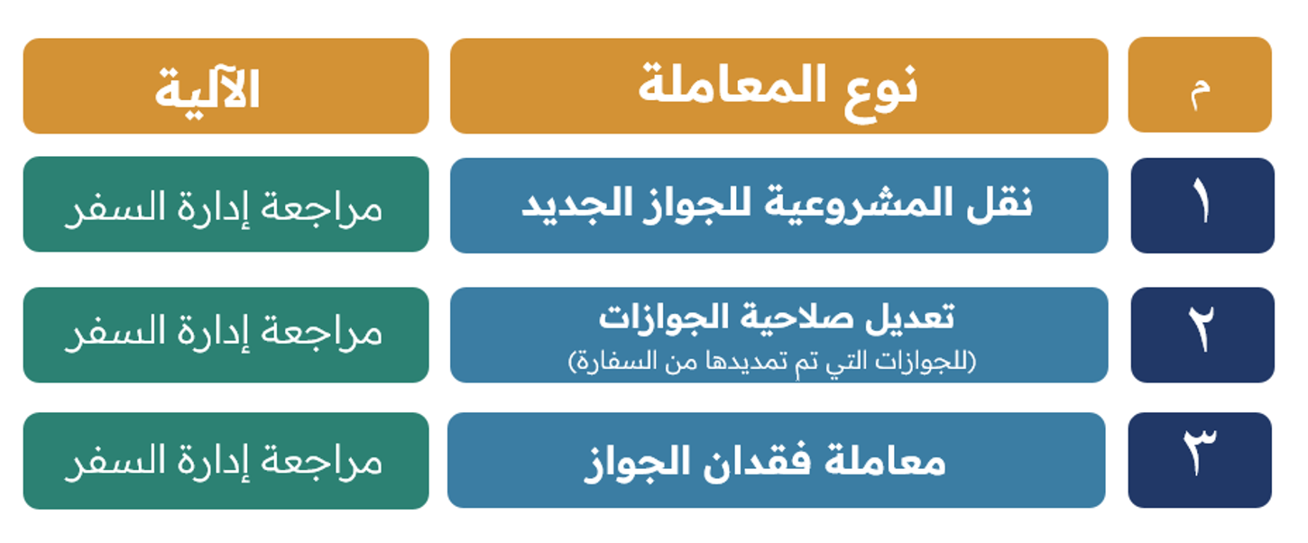 استخراج الإقامات وتجديدها وما يتعلق بها .إصدار تــــــذاكــــــــــــــــــــــــر السفـــــــــــــــــــــــر .معامـــــــــــــــــــــــــــــــــــــلات الجـــــــــــــــــوازات .إصدار تأشيـــــــــــــــرات الخــــــــــروج النهائي .