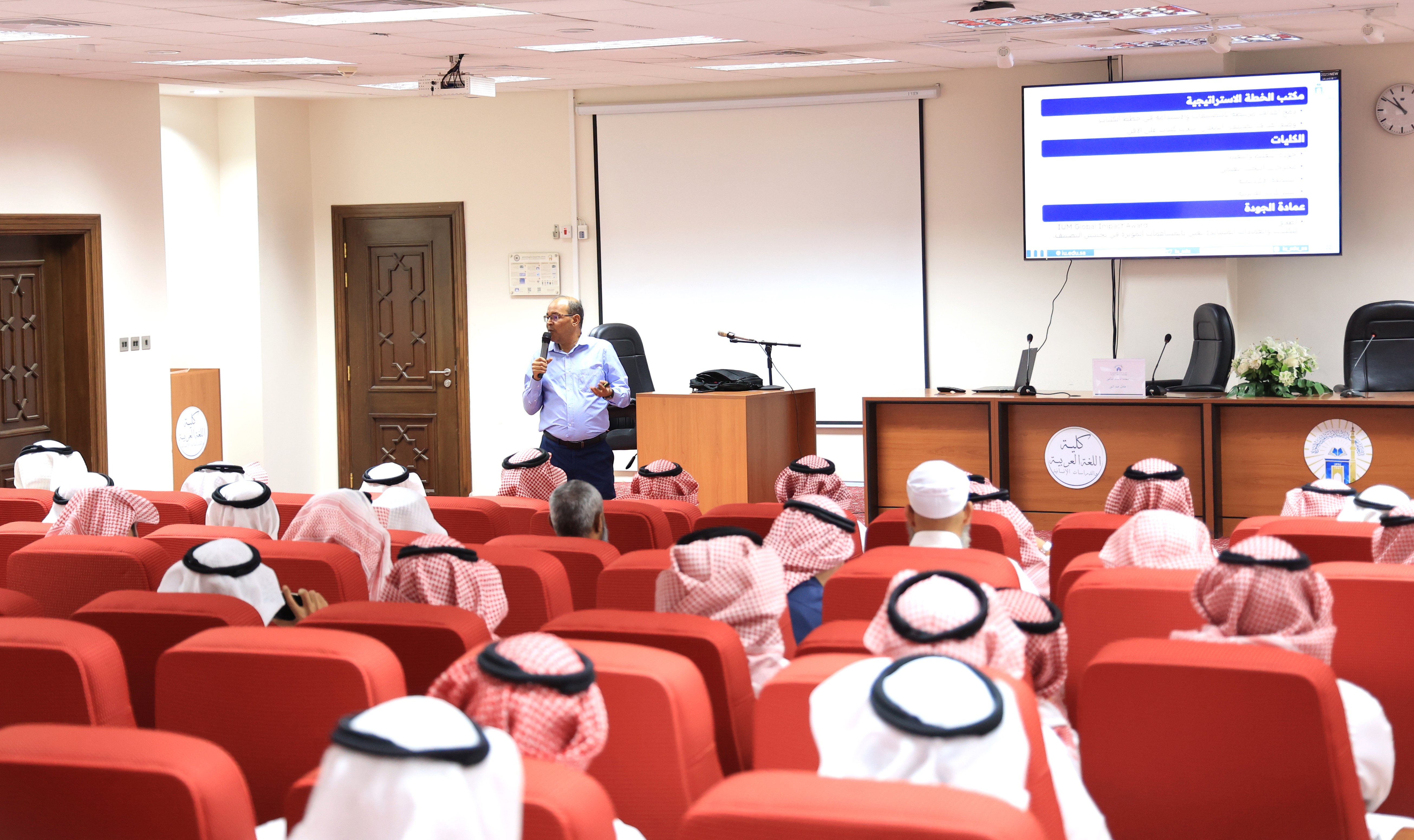 سعيًا لرفع مستوى النشر العلمي وتحقيق مراكز متقدمة في التصنيفات العالمية، نظّمت كلية اللغة العربية والدراسات الإنسانية بالتعاون مع عمادة التطوير والجودة بالجامعة الإسلامية صباح اليوم ورشة عمل بعنوان: "دور أعضاء هيئة التدريس ومن في حكمهم في التصنيفات".