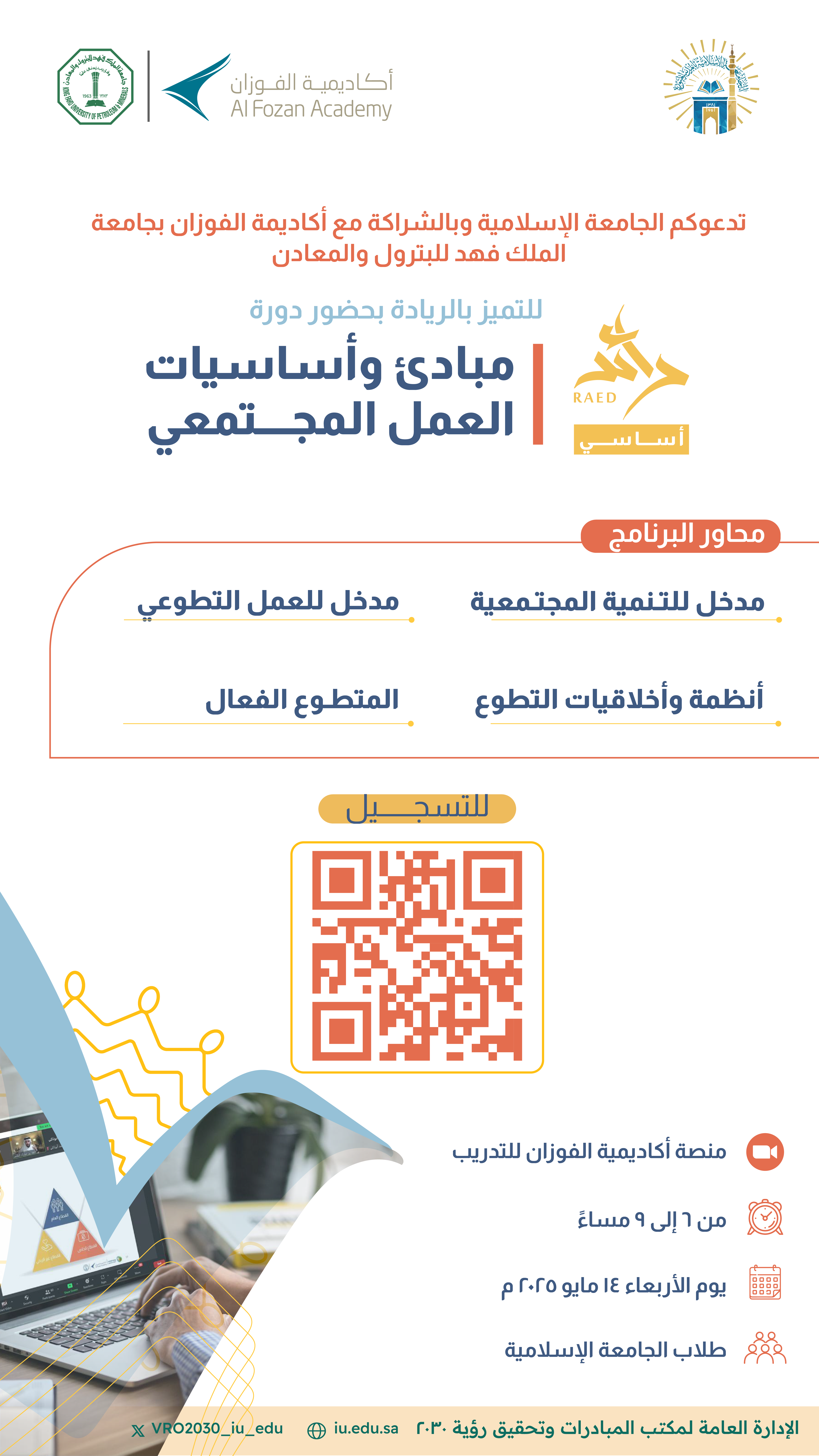 📢 تدعوكم الجامعة الإسلامية بالشراكة مع أكاديمية الفوزان بجامعة الملك فهد للبترول والمعادن للمشاركة في برنامج #رائد_أساسي.