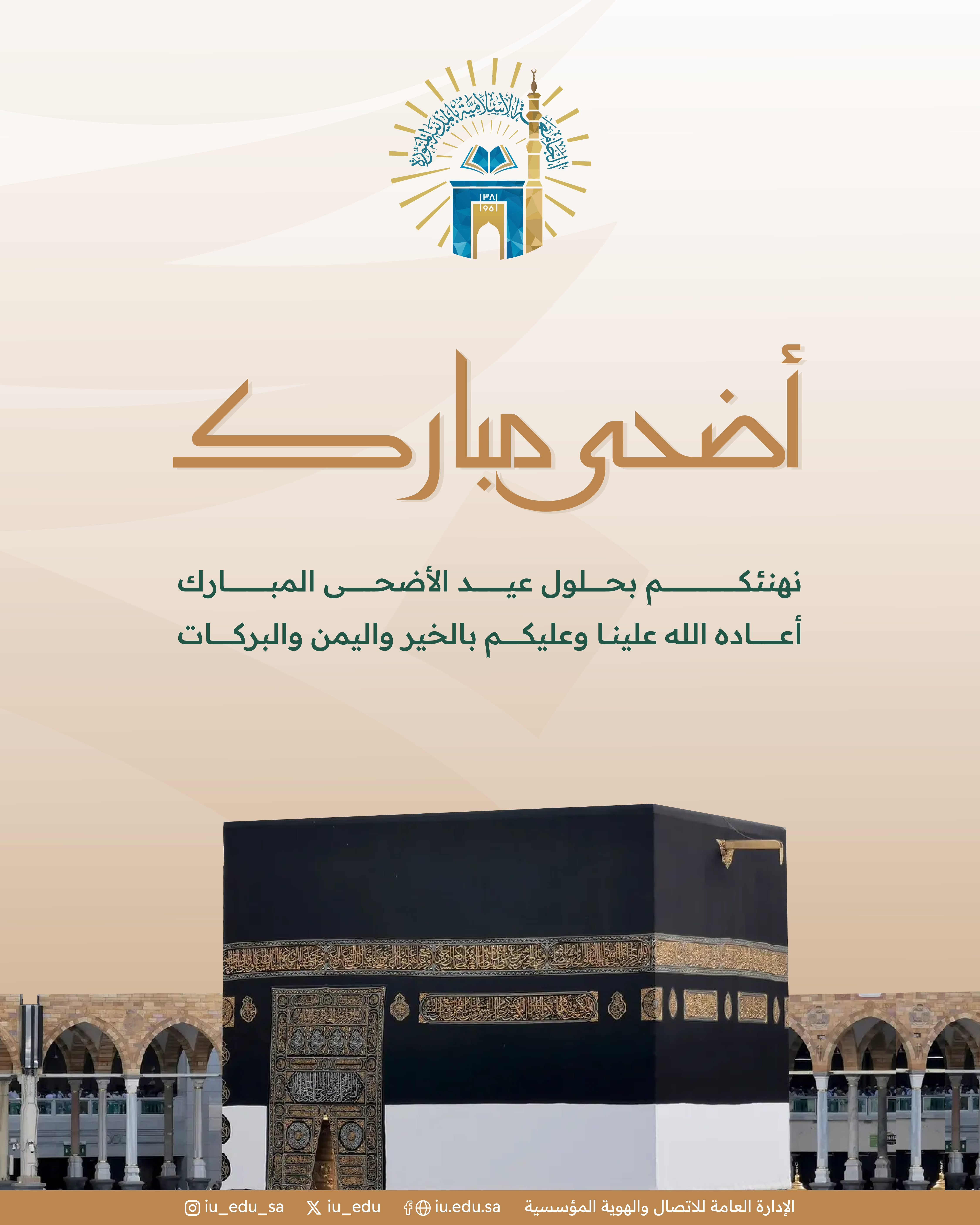 الجامعة الإسلامية تهنئكم بحلول عيد الأضحى المبارك، سائلين الله أن يتقبّل منّا ومنكم صالح الأعمال.