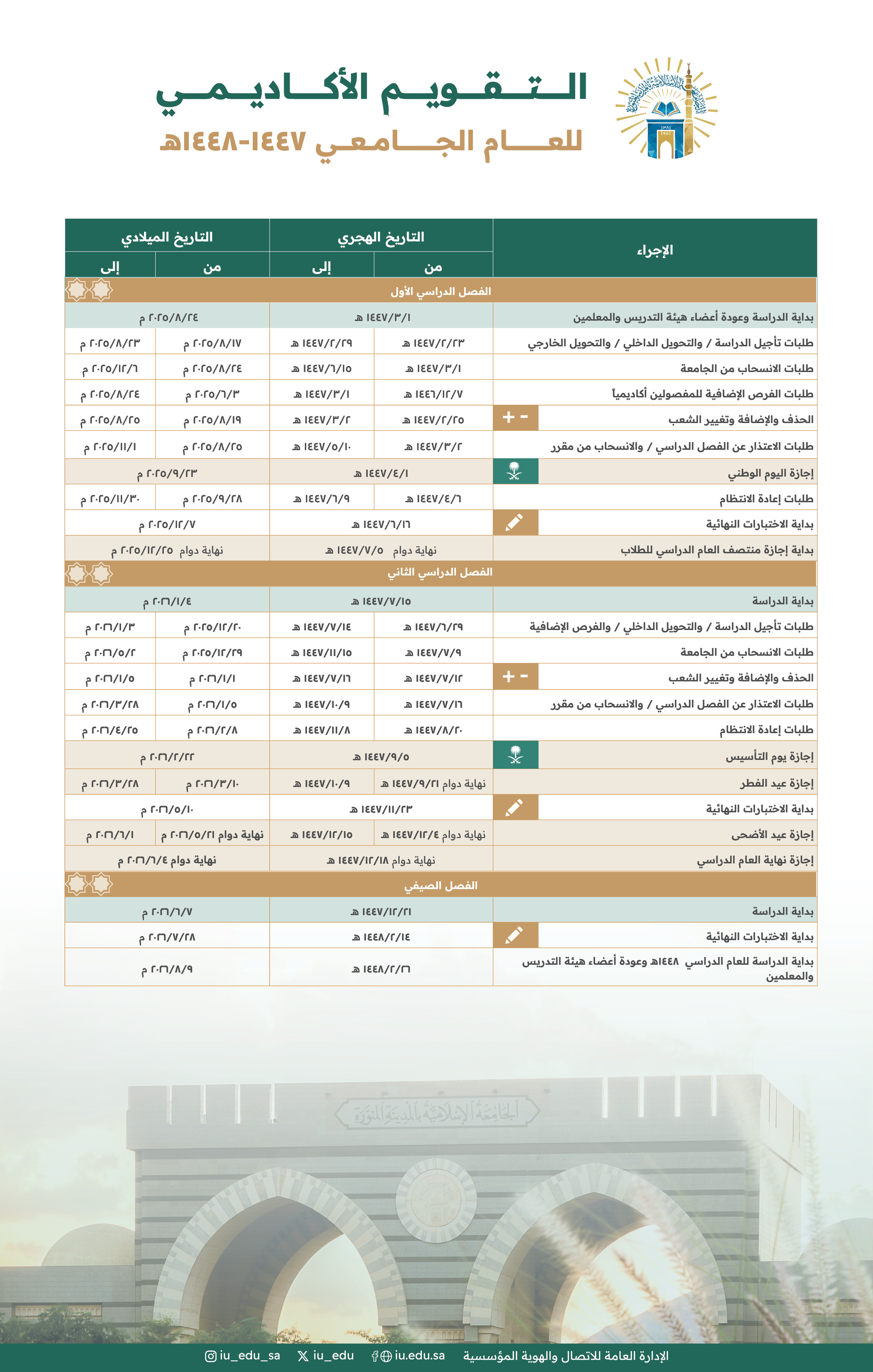 التقويم الأكاديمي للعام الجامعي 1447 / 1448هـ، 2025 / 2026م.