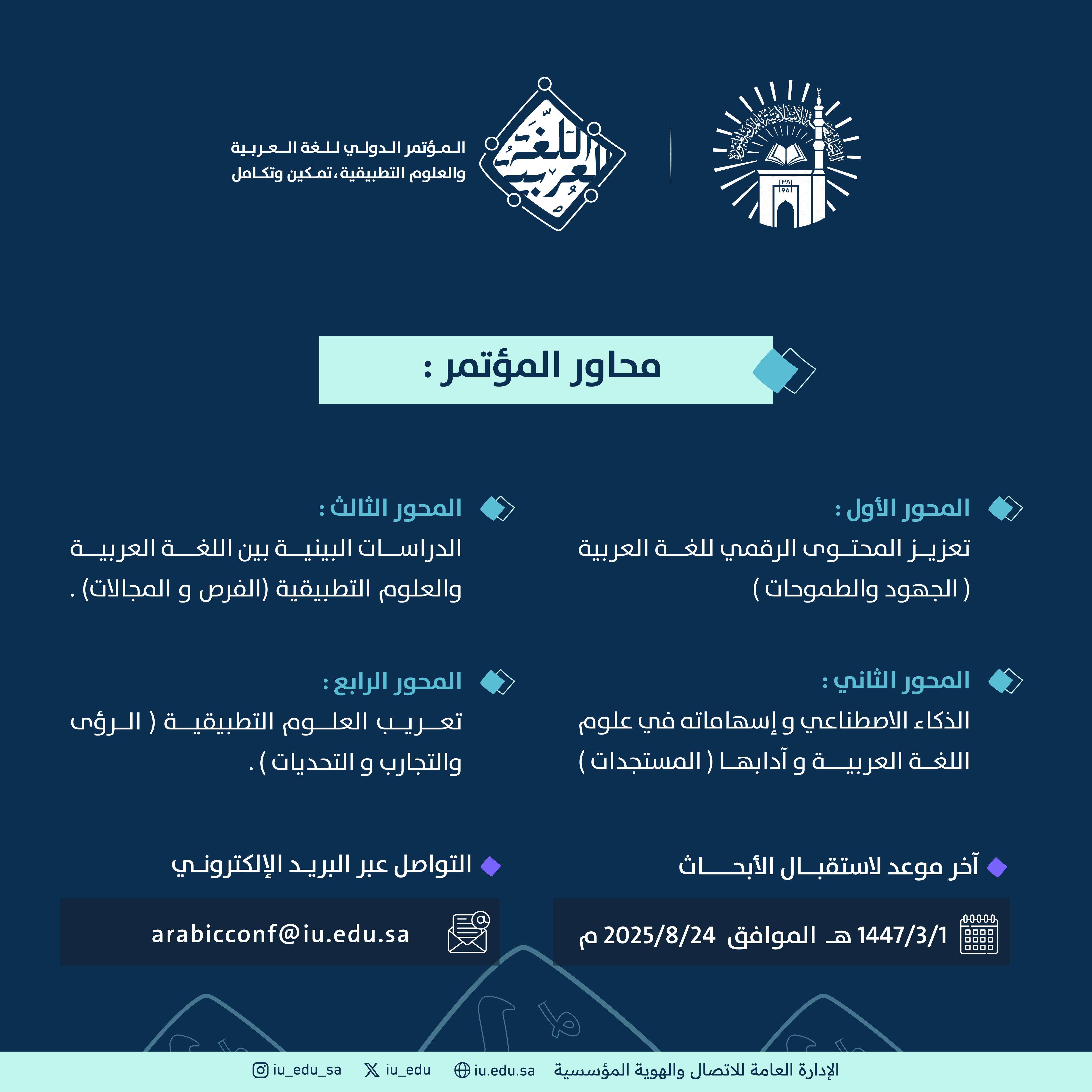 تعرف على محاور المؤتمر الدولي: اللغة العربية والعلوم التطبيقية "تمكين وتكامل" في الجامعة الإسلامية.