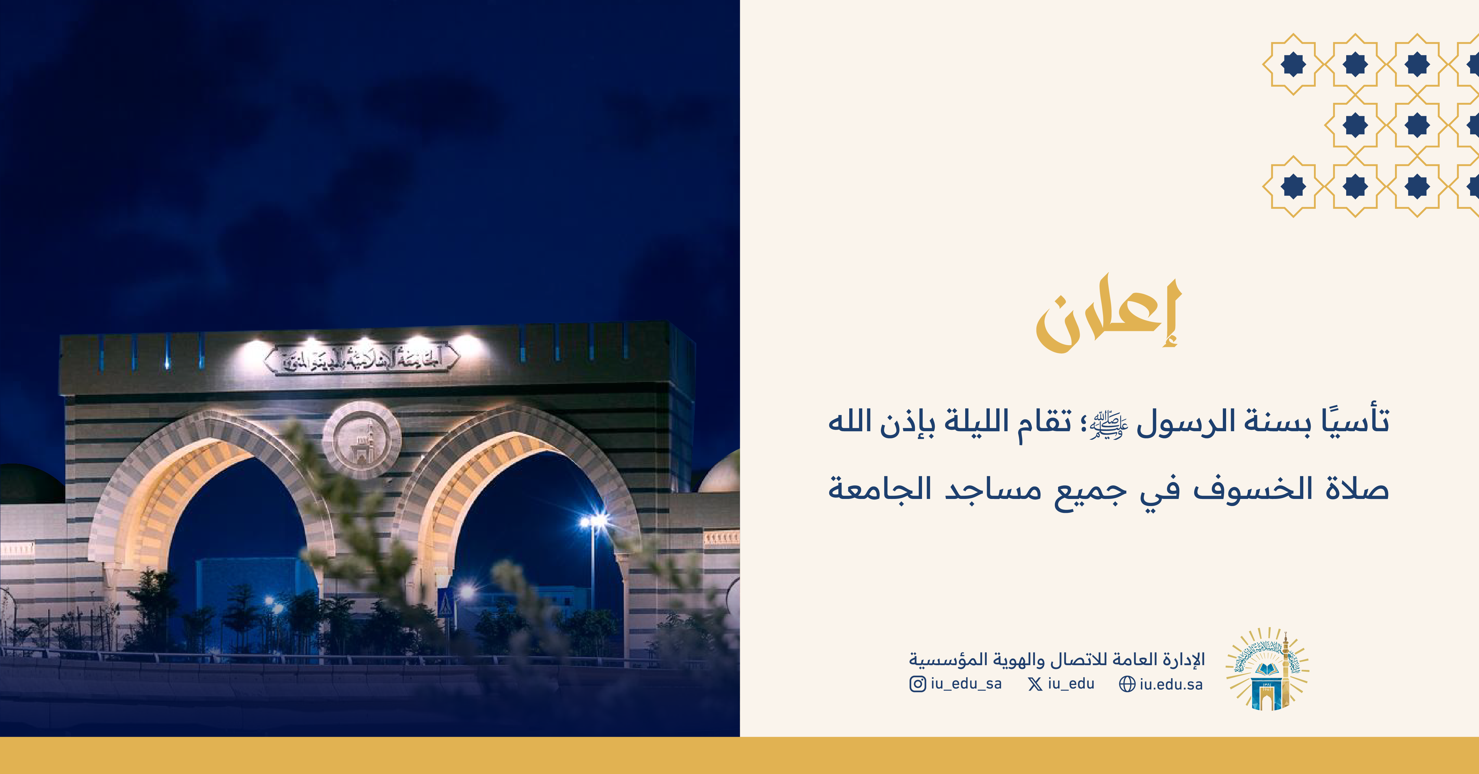 ستقام صلاة الخسوف بإذن الله اليوم في جميع مساجد الجامعة الإسلامية.