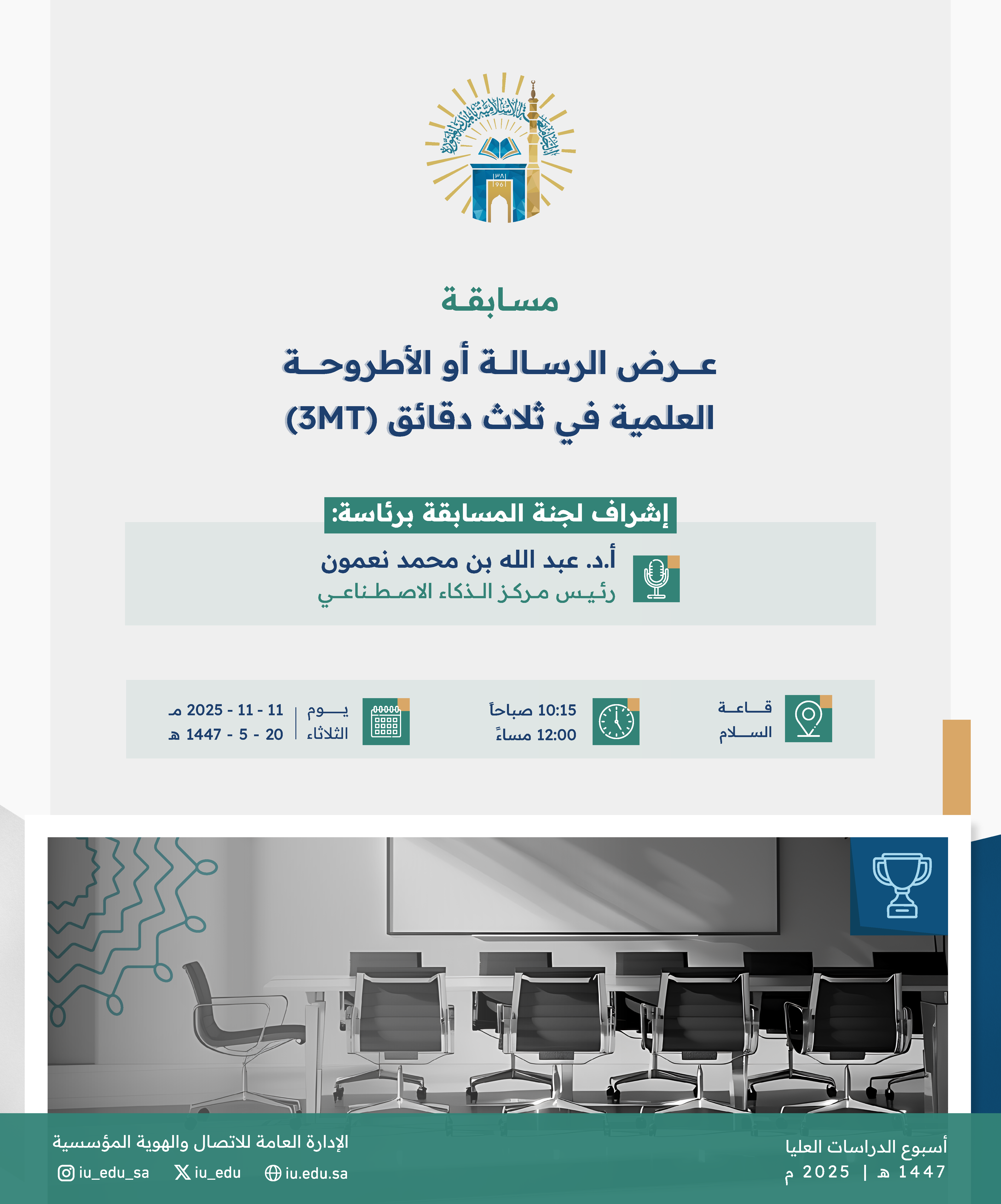 مسابقة "عرض الرسالة أو الأطروحة العلمية في ثلاث دقائق (3MT)"، بإشراف لجنة المسابقة أ.د. عبد الله نعمون رئيس مركز الذكاء الاصطناعي