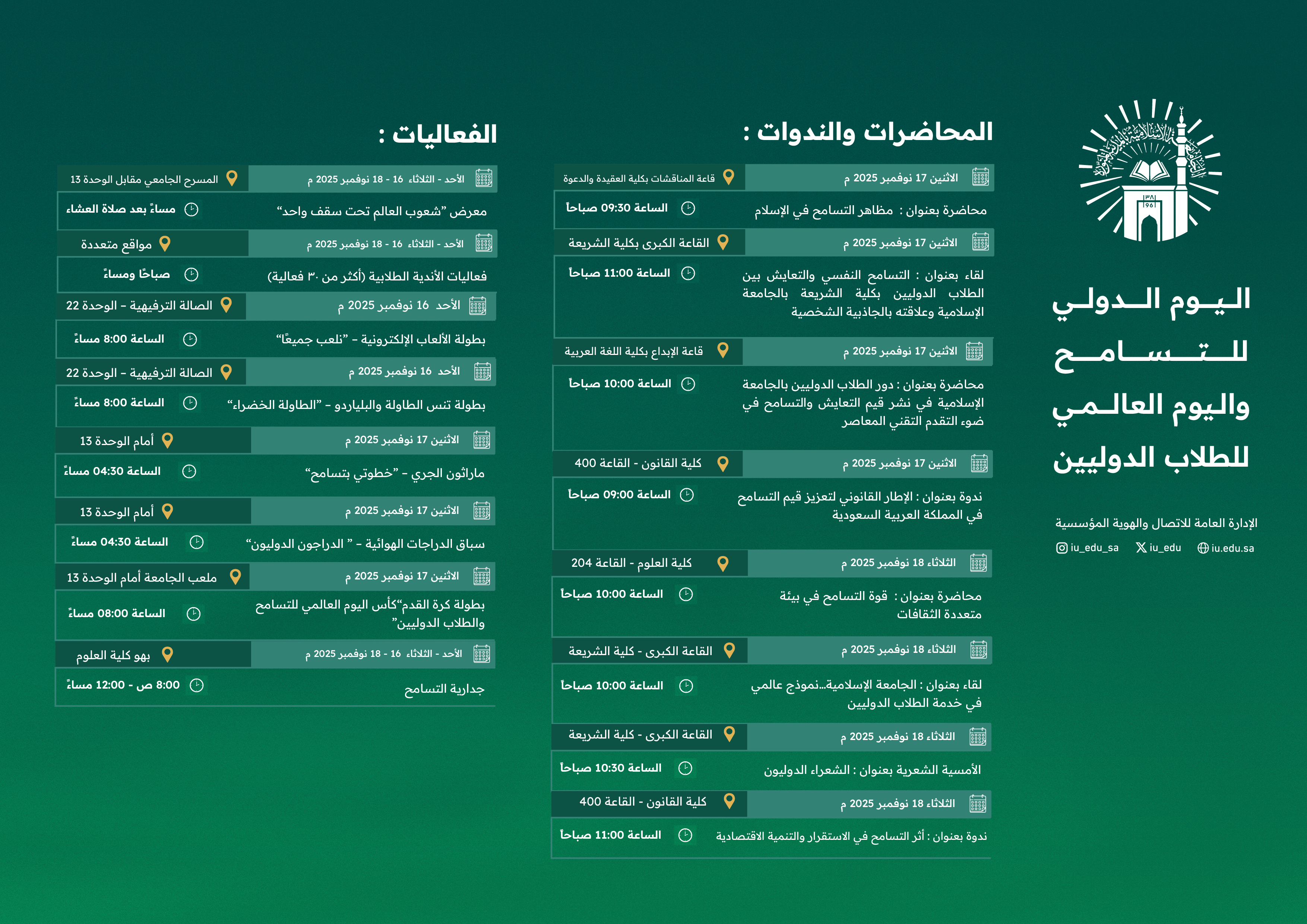 فعاليات اليوم الدولي للتسامح واليوم العالمي للطلاب الدوليين في الجامعة الإسلامية.