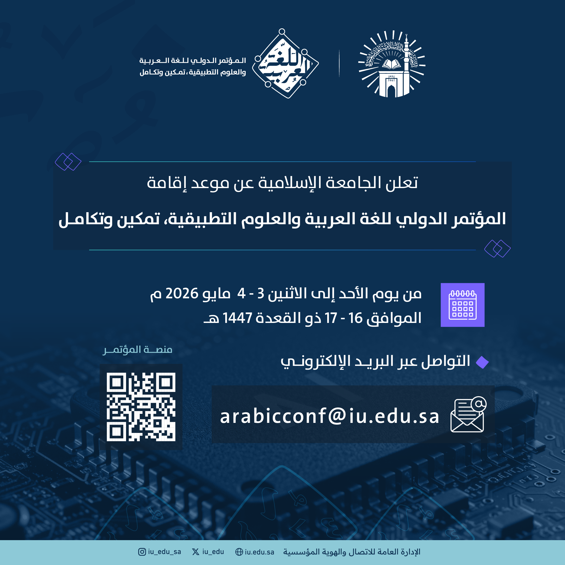 تعلن الجامعة الإسلامية عن موعد إقامة المؤتمر الدولي: اللغة العربية والعلوم التطبيقية "تمكين وتكامل".