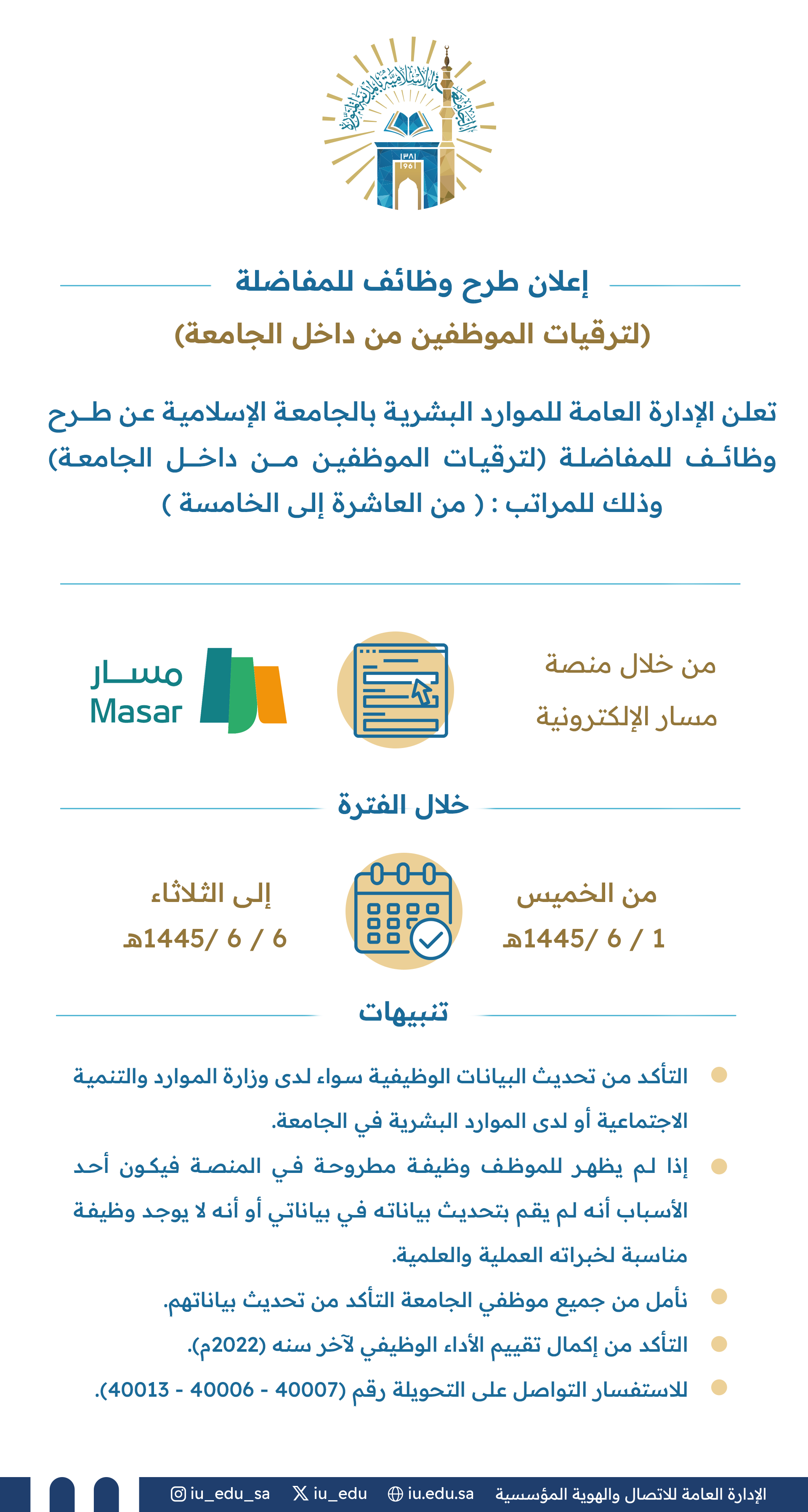 طرح وظائف للمفاضلة لترقيات الموظفين من داخل الجامعة