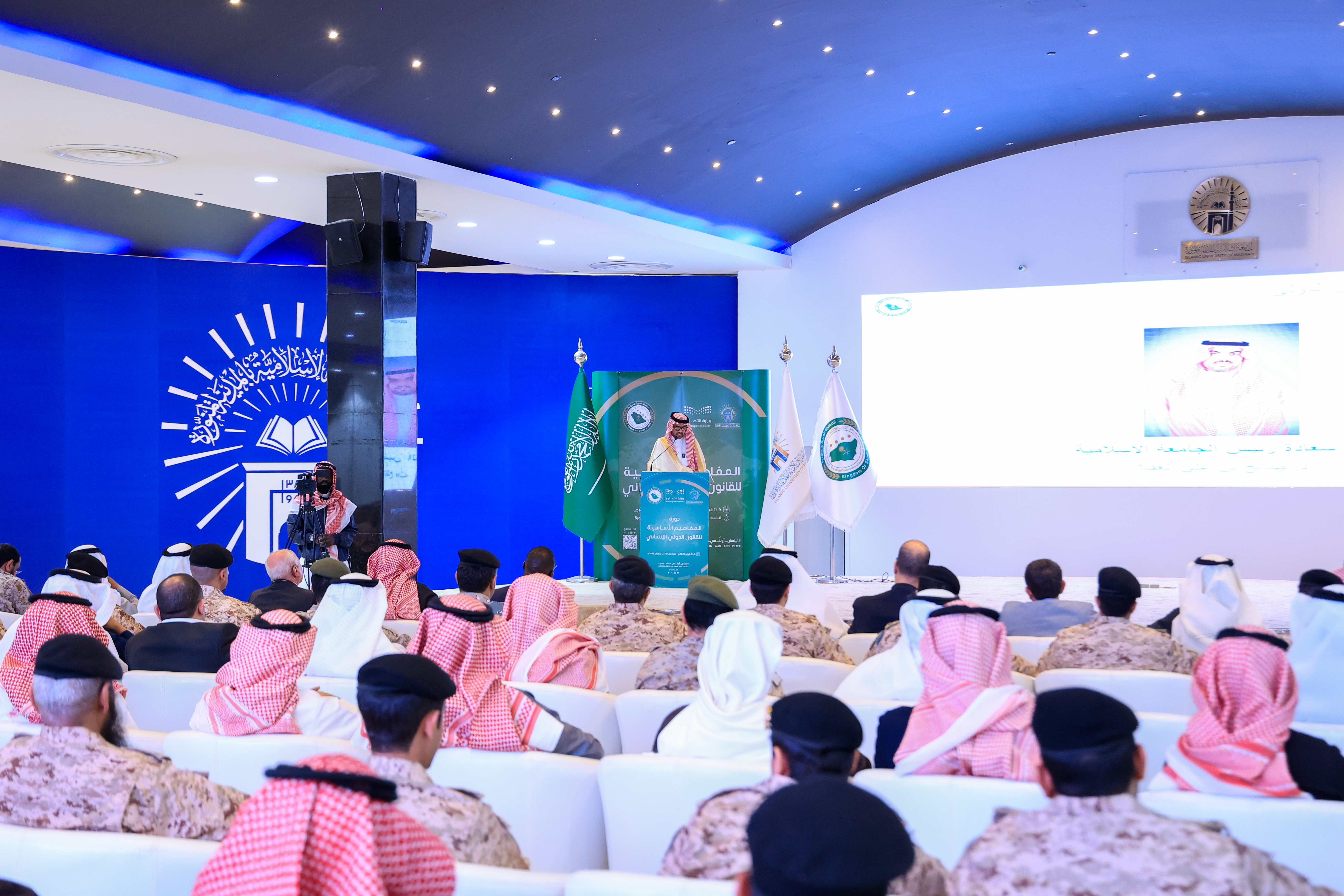 افتتح رئيس الجامعة الإسلامية د. صالح بن علي العقلا، دورة المفاهيم الأساسية للقانون الدولي الإنساني، والتي نظمتها اللجنة الدائمة للقانون الدولي الإنساني بالتعاون مع الجامعة الإسلامية، تحت شعار (الإنسان أولًا في السلم والحرب)، بحضور نخبة من الأكاديميين والمتخصصين، في قاعة السلام بالجامعة.