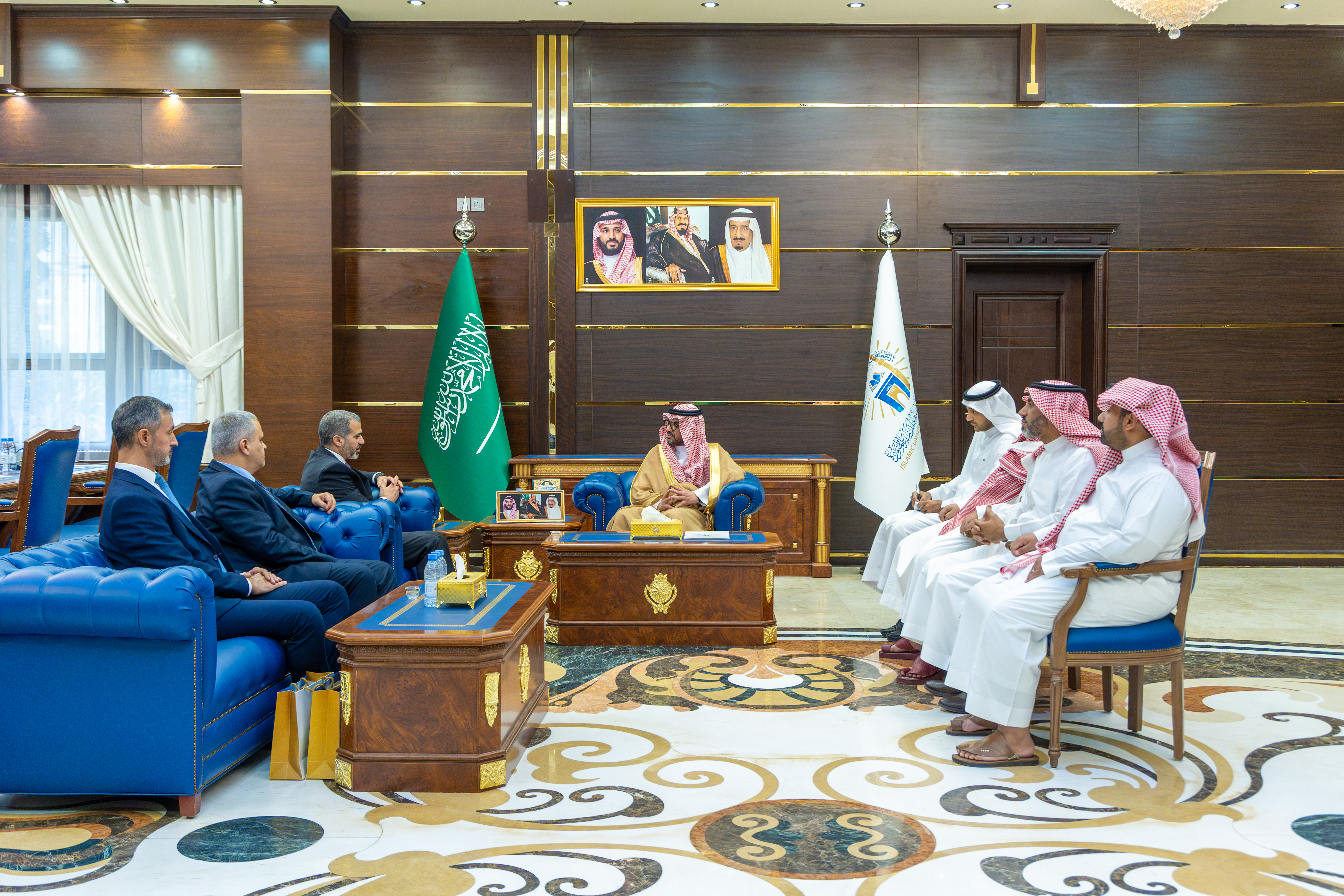 رئيس الجامعة الإسلامية د. صالح بن علي العقلا، يستقبل القنصل العام لجمهورية العراق لدى المملكة، السيد محمد سمير النقشبندي، والوفد المرافق له، جرى خلال اللقاء مناقشة الموضوعات ذات الاهتمام المشترك.
