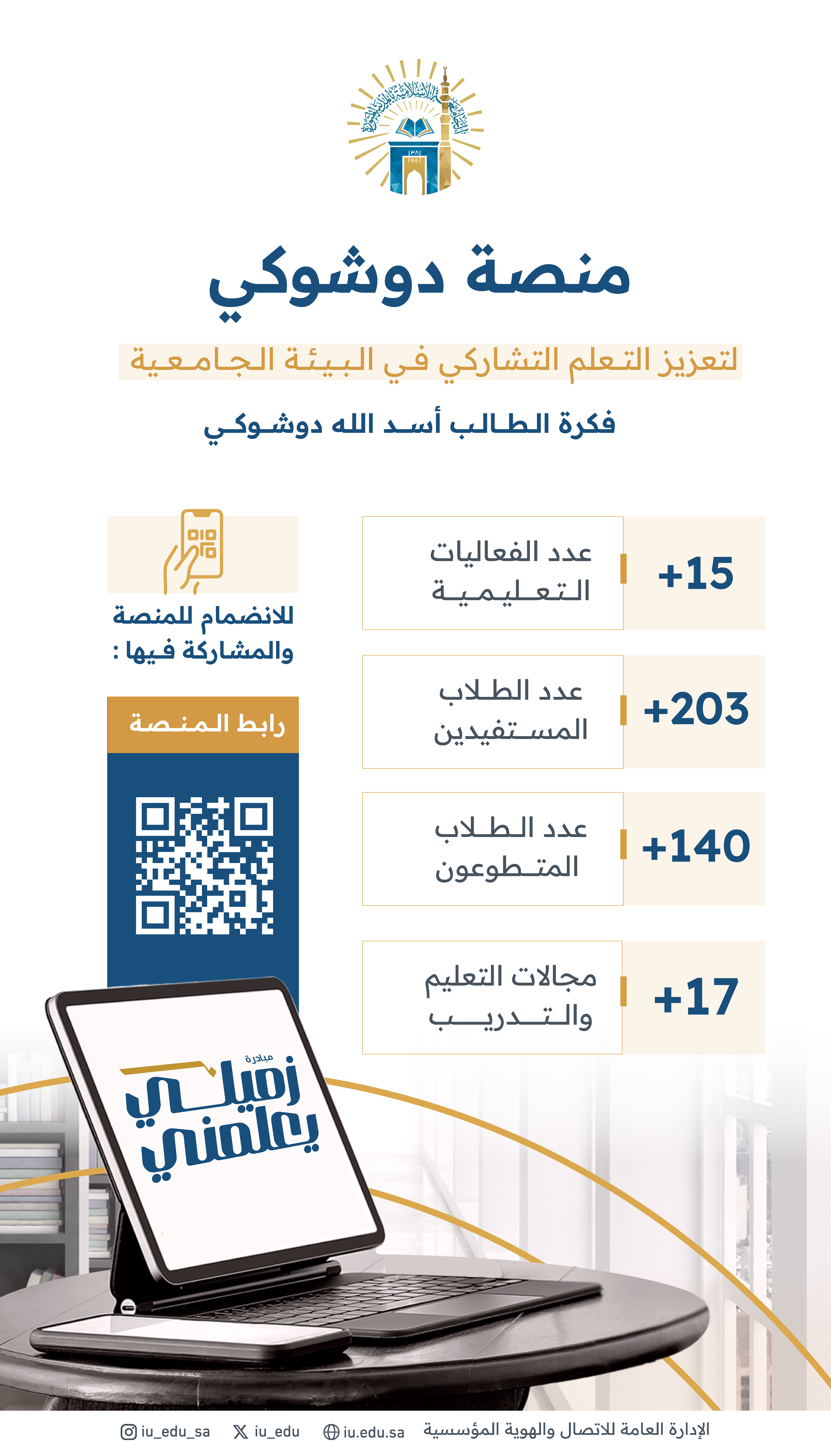 يذكر أن “منصة دوشوكي” أُطلقت في شهر شعبان، وبدأت في مرحلتها الأولية بتسجيل المتطوعين في التدريس ورغبات الطلاب، هذا مما يُبرز الإقبال الكبير على المبادرة ودورها الفاعل في دعم العملية التعليمية داخل البيئة الجامعية.