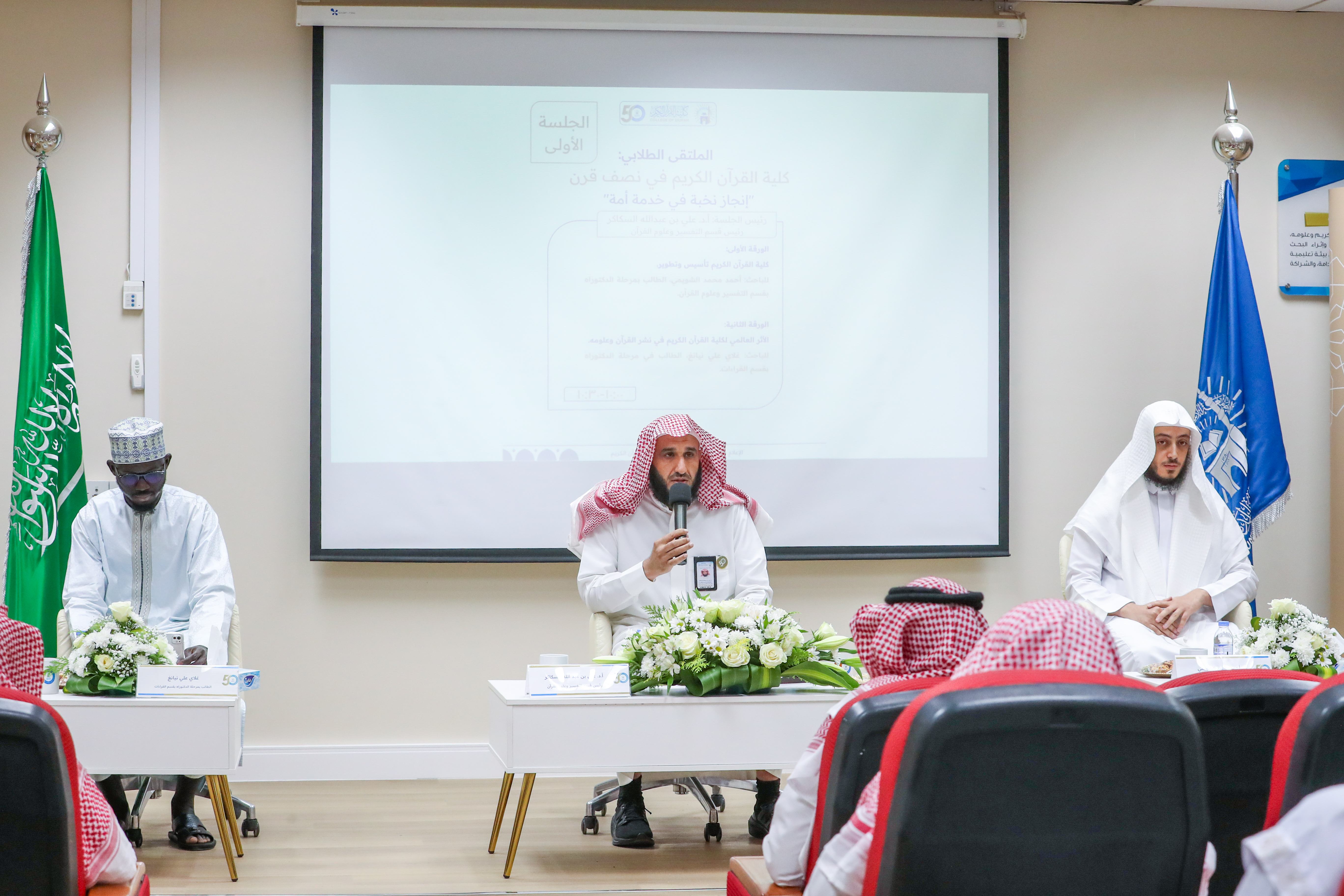 برعاية رئيس الجامعة الإسلامية، وبحضور وكيل الجامعة للدراسات العليا والبحث العلمي أ. د. علي بن موسى الزهراني، نظّمت الجامعة ممثلةً في كلية القرآن الكريم،"الملتقى الطلابي" احتفاءً بمرور خمسين عاماً على إنشائها، تحت شعار "إنجاز نخبة في خدمة أمة" يهدف الملتقى إلى تعريف الطلاب بأبرز آثار كلية القرآن وثمارها في التعليم والدعوة.