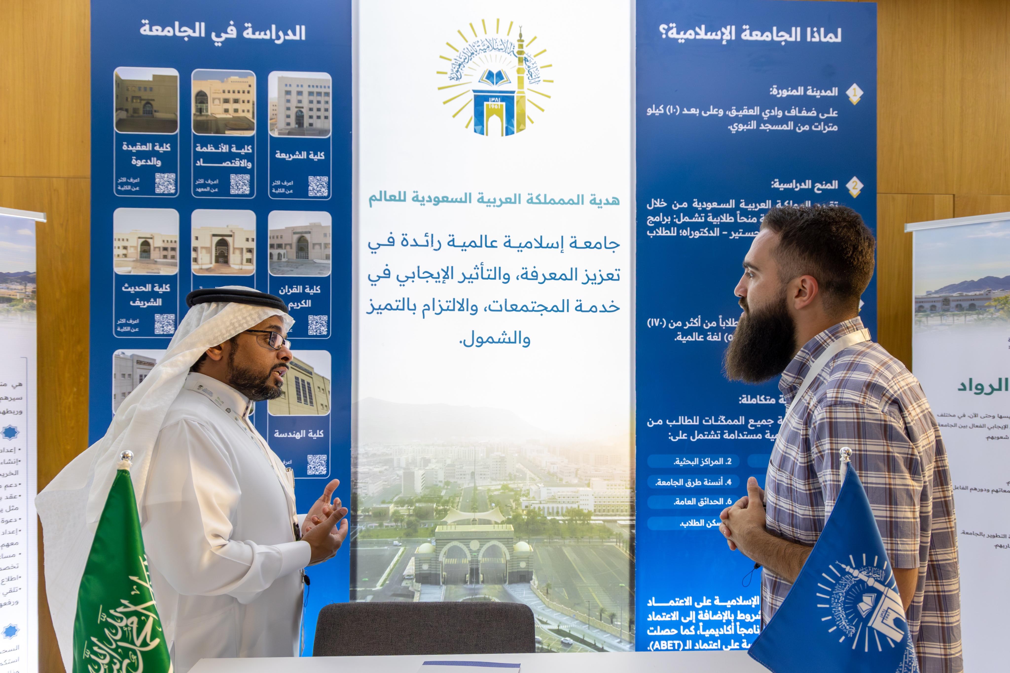 كما زار عدد من الشخصيات جناح الجامعة الإسلامية في ملتقى خريجي الجامعات السعودية من دول البلقان، من بينهم رئيس الجمعية الخيرية والثقافية في جمهورية مقدونيا الشمالية، ورئيس اتحاد خريجي الجامعات السعودية في ألبانيا، إلى جانب عدد من الخريجين، واطلعوا على أبرز جهود الجامعة في التعليم والتبادل الثقافي، وما تقدمه للطلاب الدوليين من برامج نوعية وخدمات متميزة، والتعريف بجائزة “الخريجين الرواد” التي تقدمها الجامعة لخريجيها المتميزين منذ تأسيسها، وتبرز جهود المملكة في دعم مسيرة التعليم.