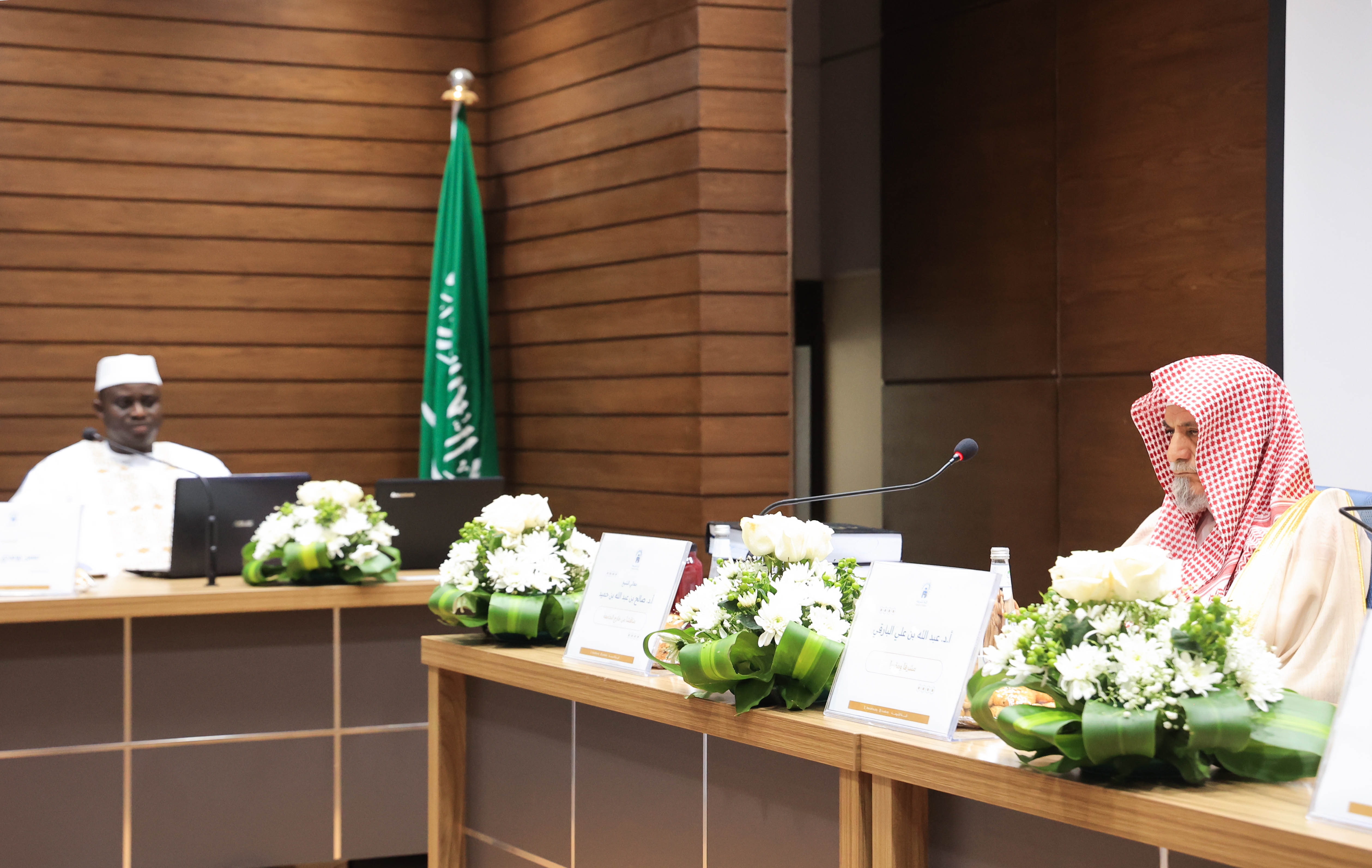 جانب من المناقشة العلمية لرسالة الدكتوراه بكلية الشريعة في الجامعة الإسلامية.