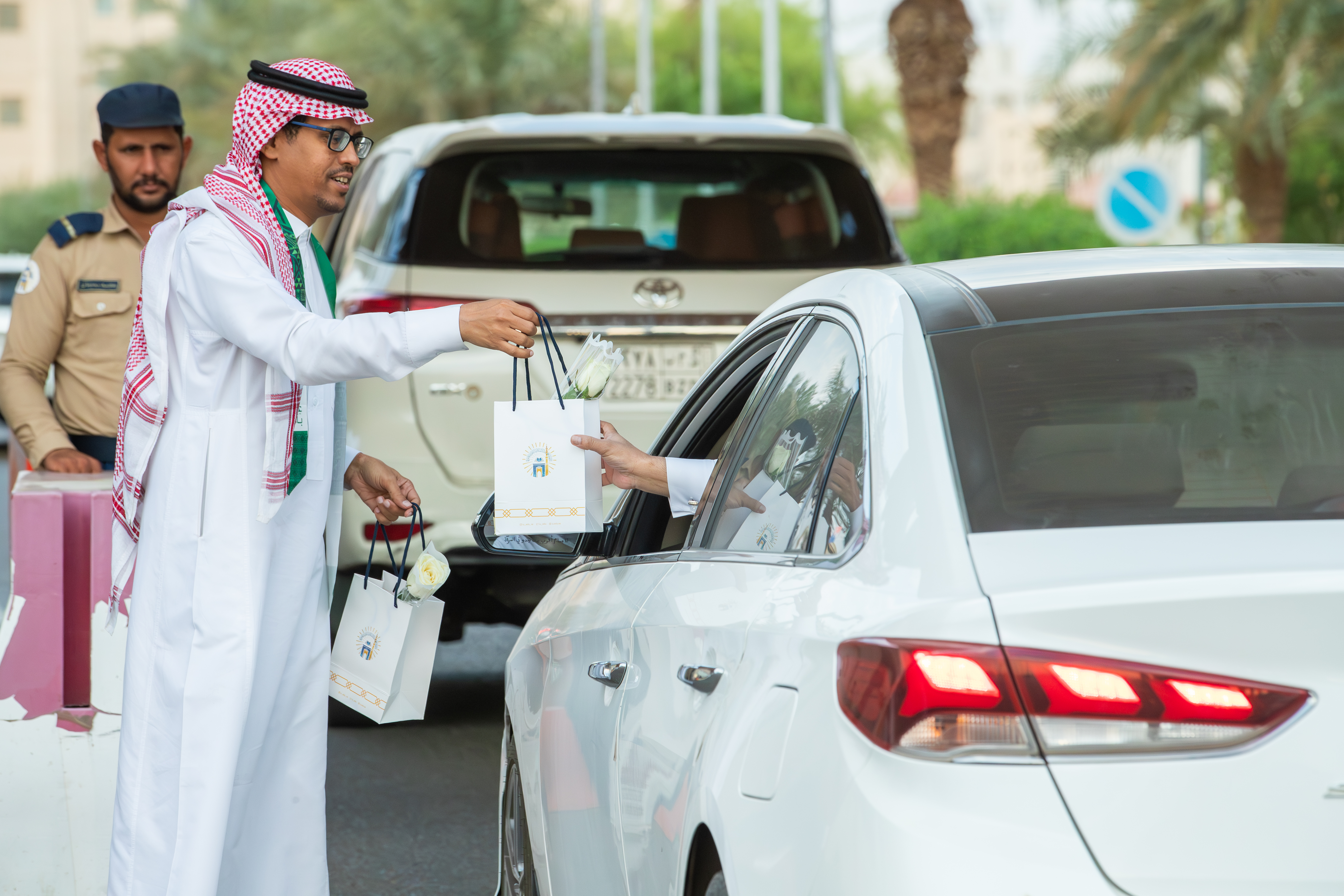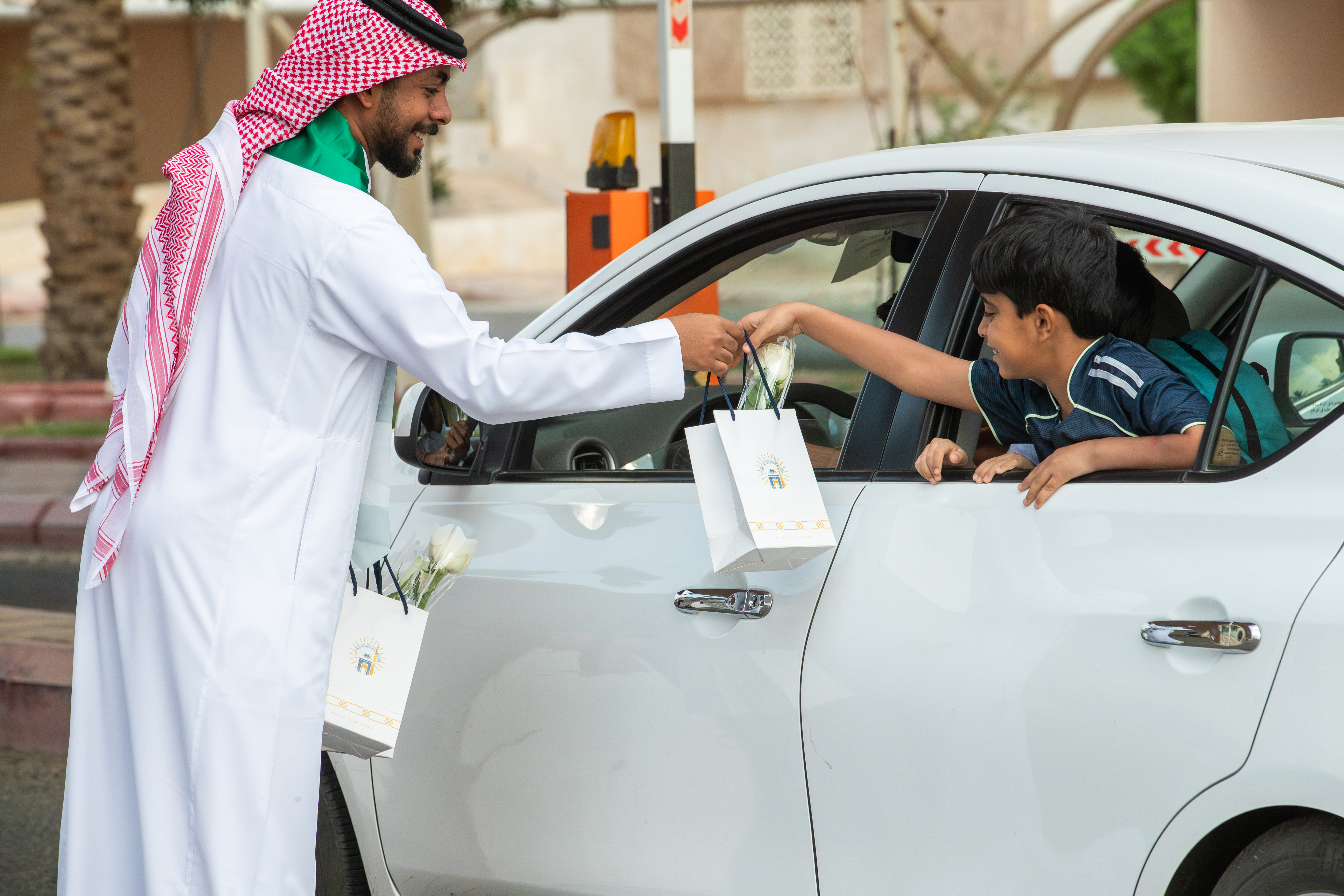 الجامعة الإسلامية تستقبل منسوبيها بالهدايا والورود احتفاء باليوم الوطني السعودي95.