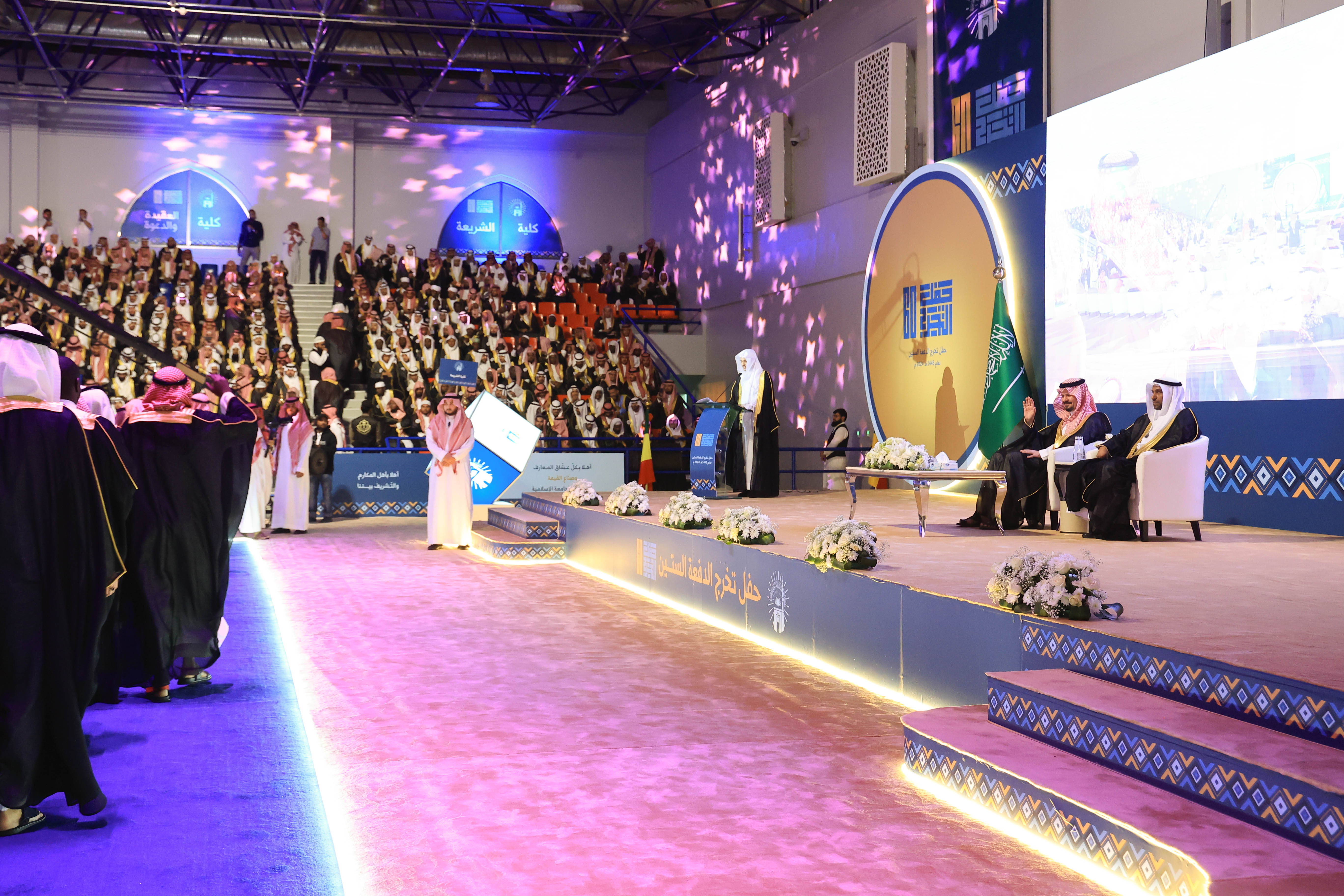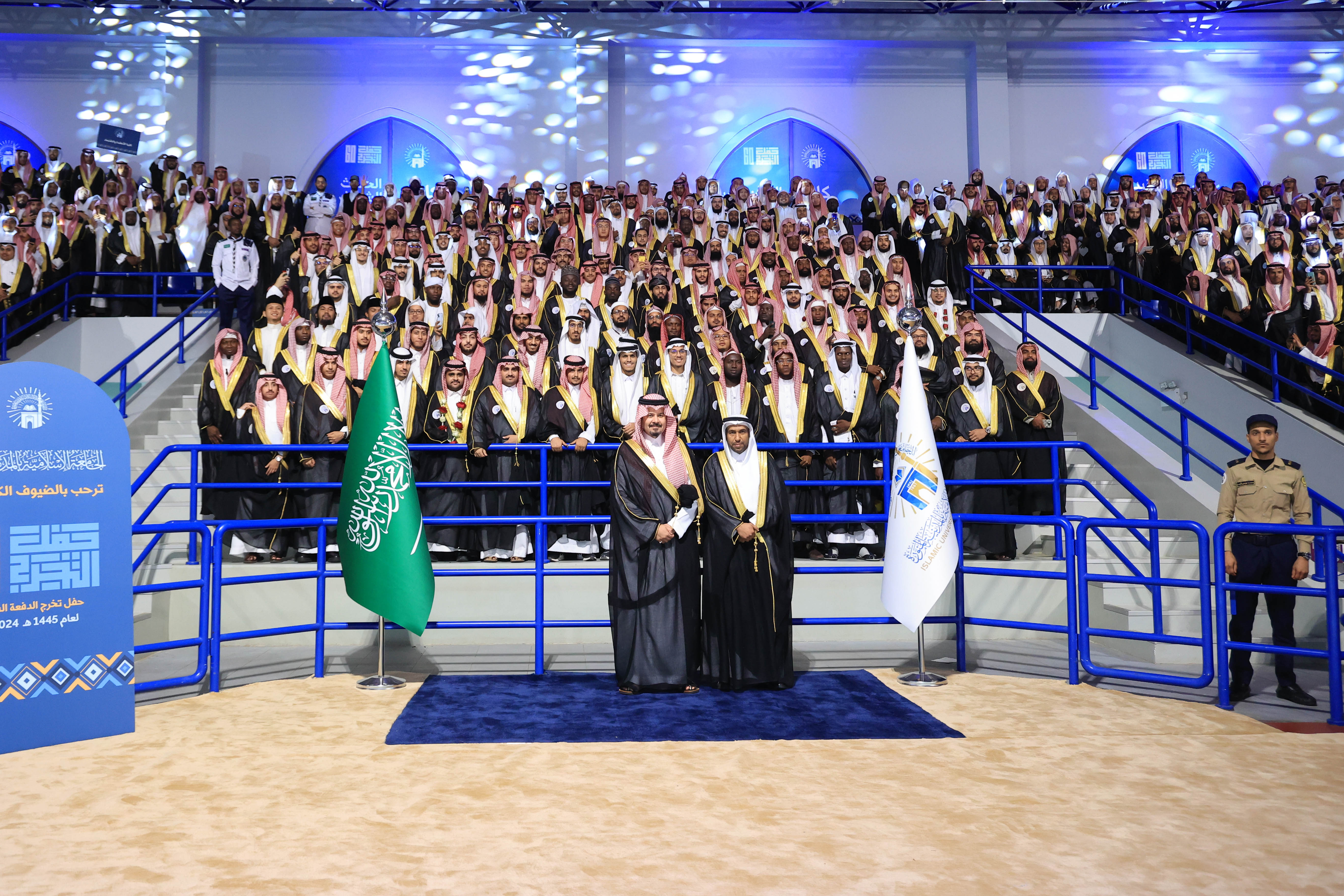 رعى صاحب السمو الملكي الأمير سلمان بن سلطان بن عبد العزيز، أمير منطقة المدينة المنورة، حفل تخريج الدفعة الـ60 من طلاب الجامعة الإسلامية للعام الجامعي 1445هـ، والبالغ عددهم 2246 خريجاً من مختلف المراحل الأكاديمية والدرجات العلمية، ونوّه سمو أمير منطقة المدينة المنورة، بالدور الذي تضطلع به الجامعة الإسلامية في تعزيز الجوانب التعليمية والبحثية والمعرفية لمنسوبيها الطلاب من حول العالم، بالإضافة إلى رسالتها في تعميق مفهوم رسالة الوسطيّة والاعتدال في ظل دعم ورعاية القيادة الرشيدة - أيدها الله - للجامعة منذ تأسيسها وحتى عهد خادم الحرمين الشريفين وسمو ولي عهده الأمين - يحفظهما الله - لتكون نبراساً معتدلاً في نشر المعرفة والعلم وخدمة المسلمين في كل أنحاء العالم.